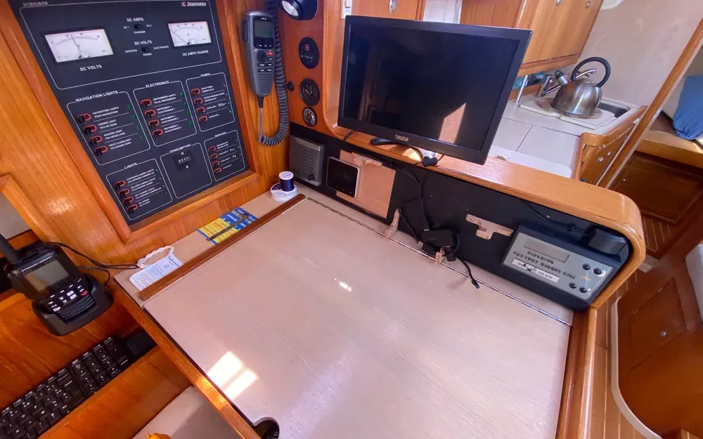 Compas, VHF intérieure fixe, speedomètre, girouette-anémomètre, sondeur, loch, pilote automatique