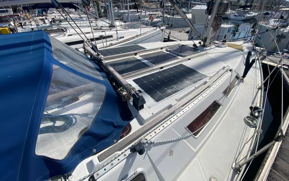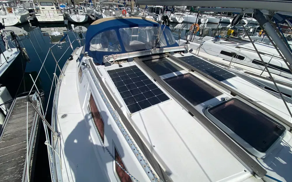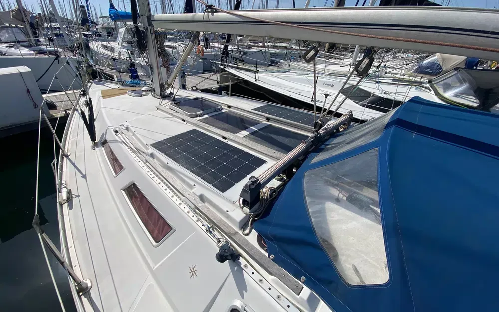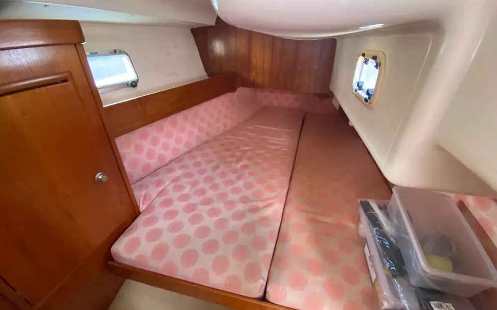 Pour votre confort : chauffe-eau, deux douchettes (eau douce et cockpit), WC marin à pompe manuelle, placards, rideaux complets, coffre et nombreux rangements. L’équipement électrique comprend le circuit 12V et 220V avec prises de quai et prises intérieures. Dispose également d’une échelle de bain et d’un support hors-bord.