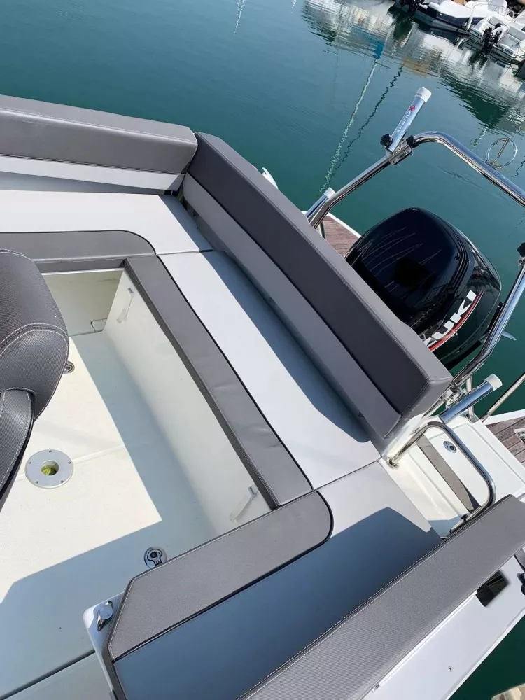 Equipé d’un moteur Suzuki 250 CV, reconnu pour sa fiabilité, sa sobriété et sa puissance parfaitement adaptée à la coque. Les performances sont douces, réactives et silencieuses, garantissant une navigation confortable même en mer formée.