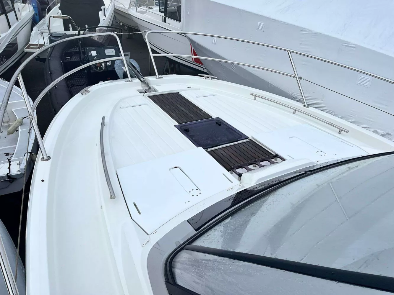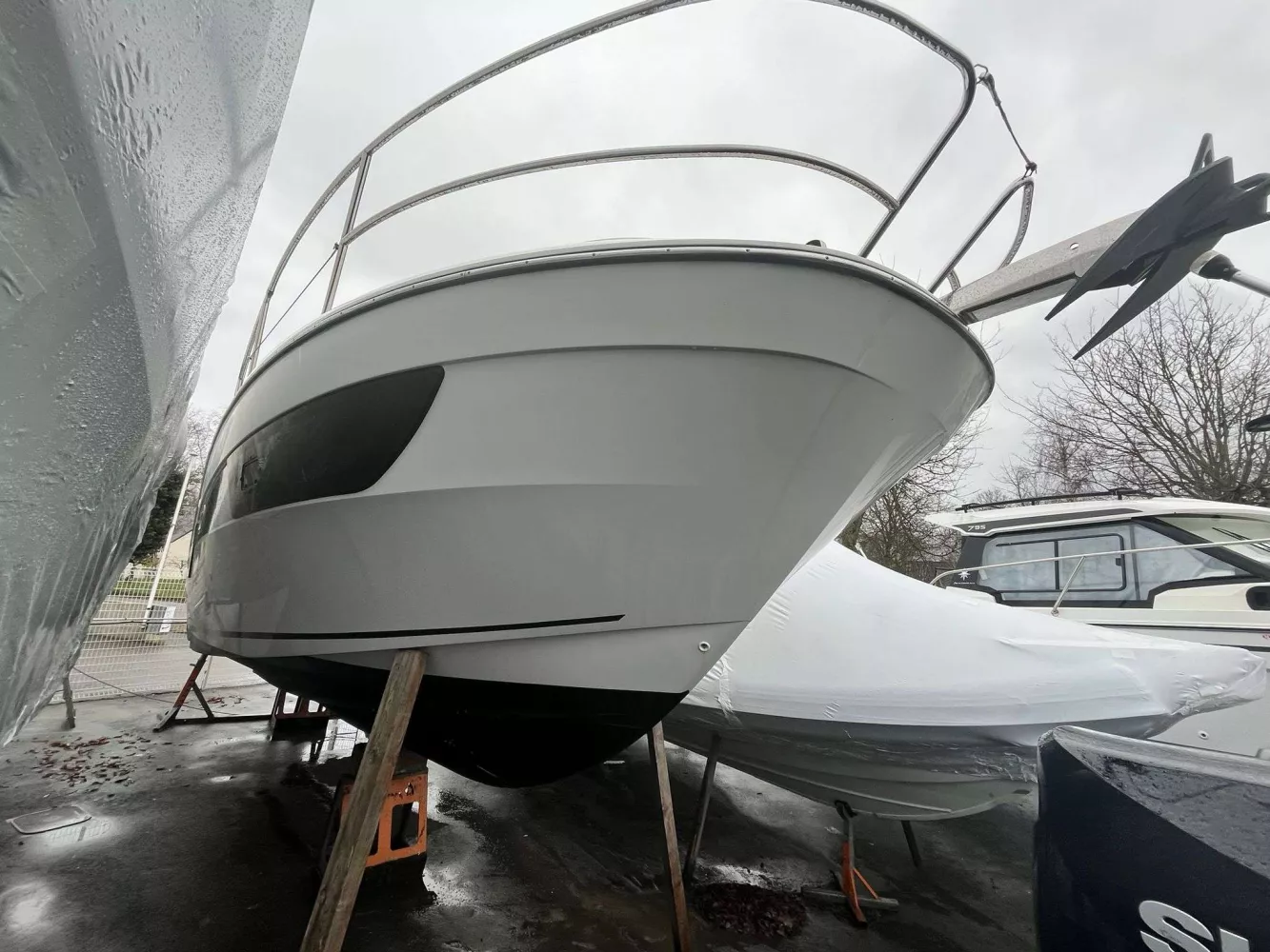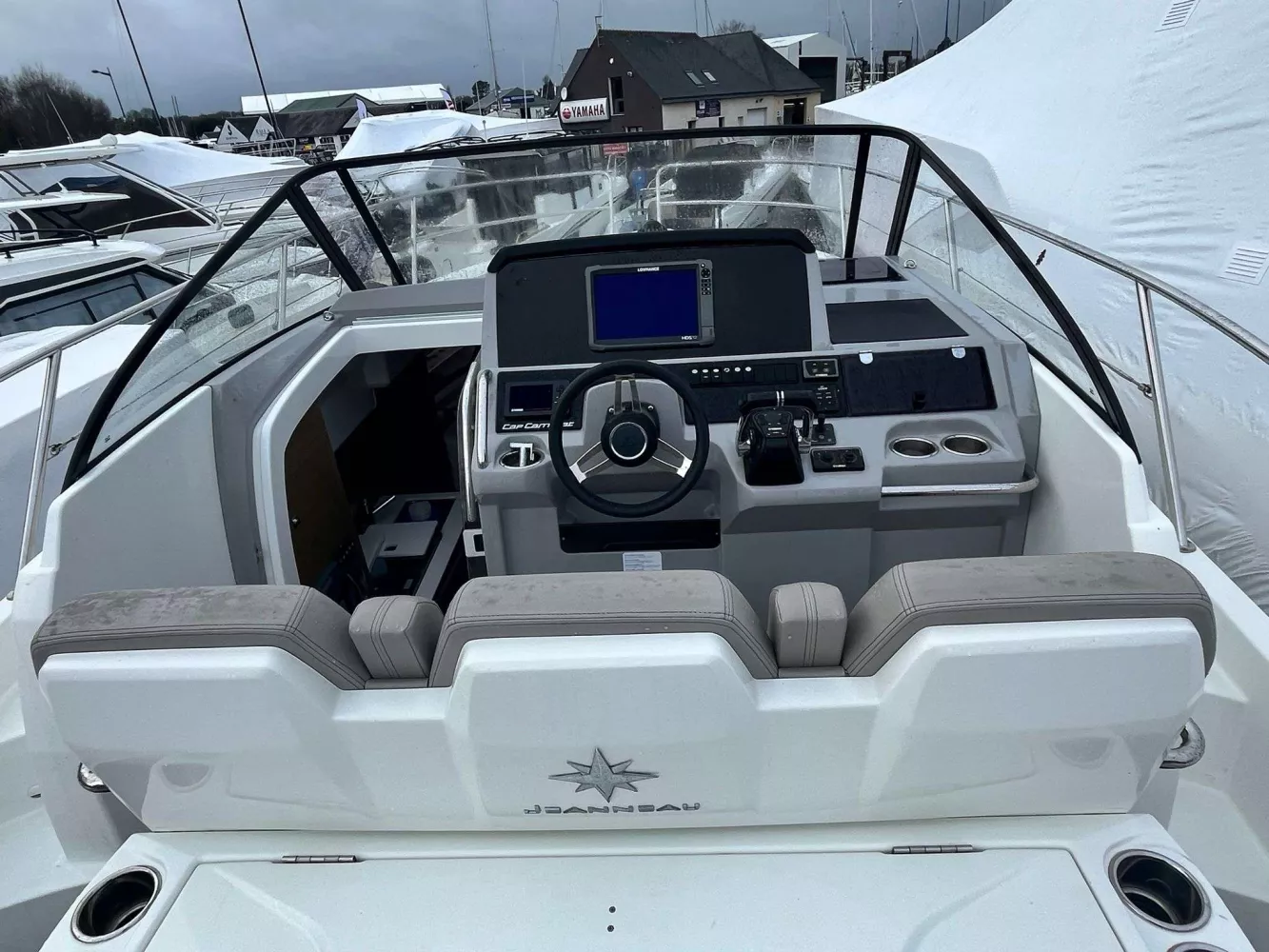 • FINITION PREMIERE incluant : Guindeau électrique, eclairage int/ext led, chargeur de quai + prise 220v, chauffe eau, flaps électriques, frigo intérieur 80L