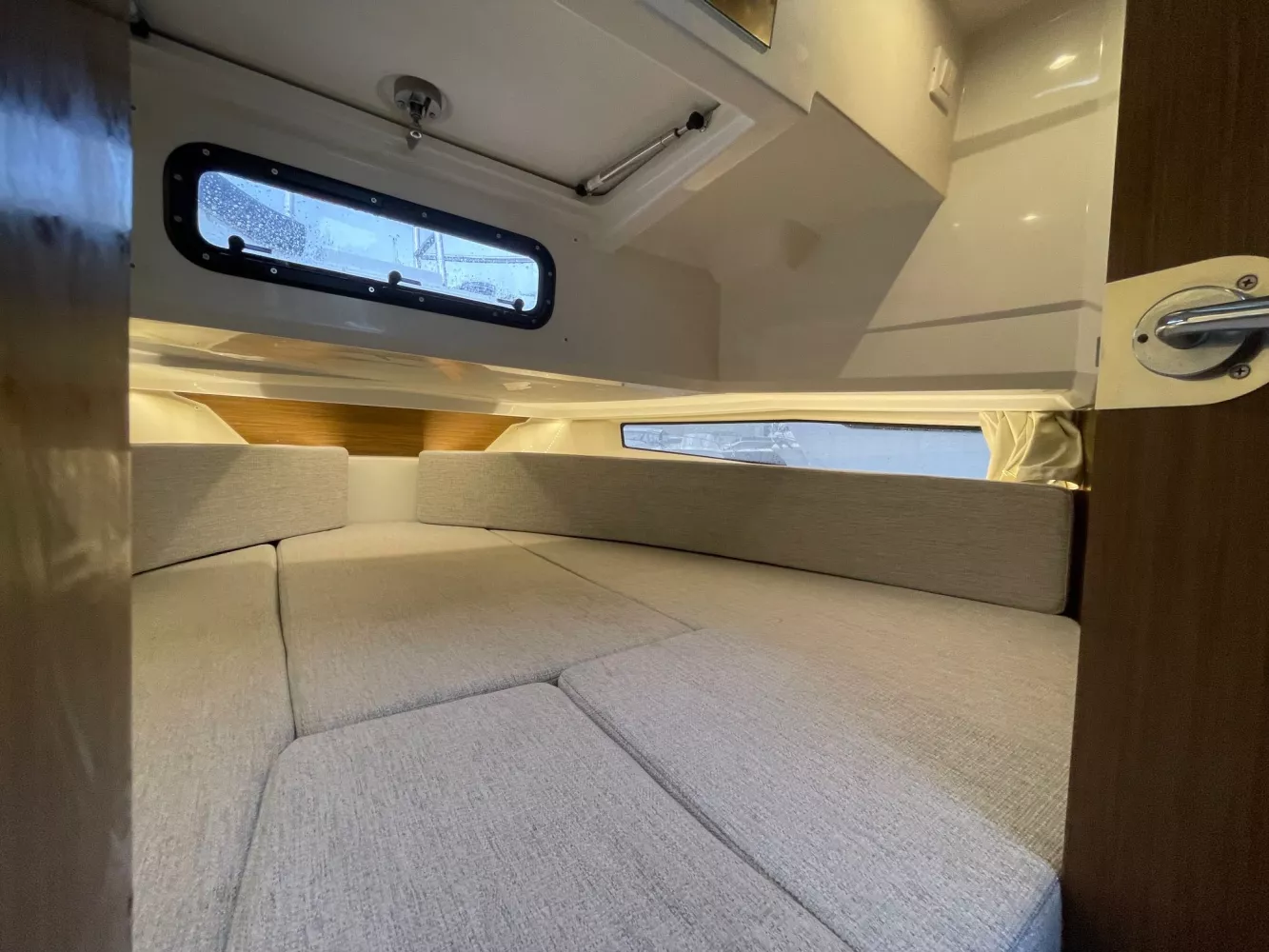 PACK ELECTRONIQUE UPGRADED GARMIN incluant Garmin GPSMAP 1223xsv et Sonde GT15M-IH // Carte Garmin Bluechart BayOfBiscay // PACK AUDIO FUSION RA210 incluant 4 Haut-parleurs et lecteur + bluetooth + USB // JOYSTICK // Flaps automatique ZIPWAKE //// FINITION PREMIERE COMPRENANT : Guindeau electrique // Coussins de banquette arrière de cockpit (2 assises _2 dossiers) // Réfrigérateur 60 L // Douchette de cockpit (eau froide) // Eclairage à LED de timonerie et cabine avant // Eclairage à LED du plancher de cockpit // Assise sur les toilettes // Bandeau de lit de la cabine avant // Anneau pour remorque //// PACK CONFORT 230V-50HZ Incluant : Propulseur d'étrave // Commande du guindeau depuis le poste de pilotage // Couvercles en corian sur le plan de travail de la cuisine au-dessus de l'évier et du réchaud gaz + extension de bar // Prise de quai 220v + chargeur + prise // Chauffe-eau 220v // Toilettes électriques à eau douce // Douchette de cockpit avec eau chaude.