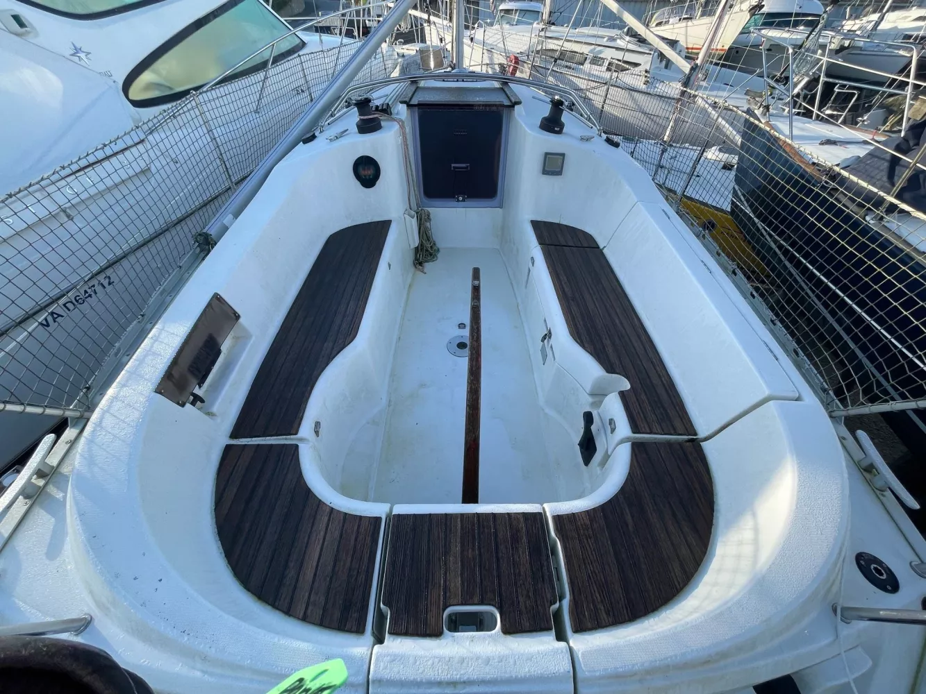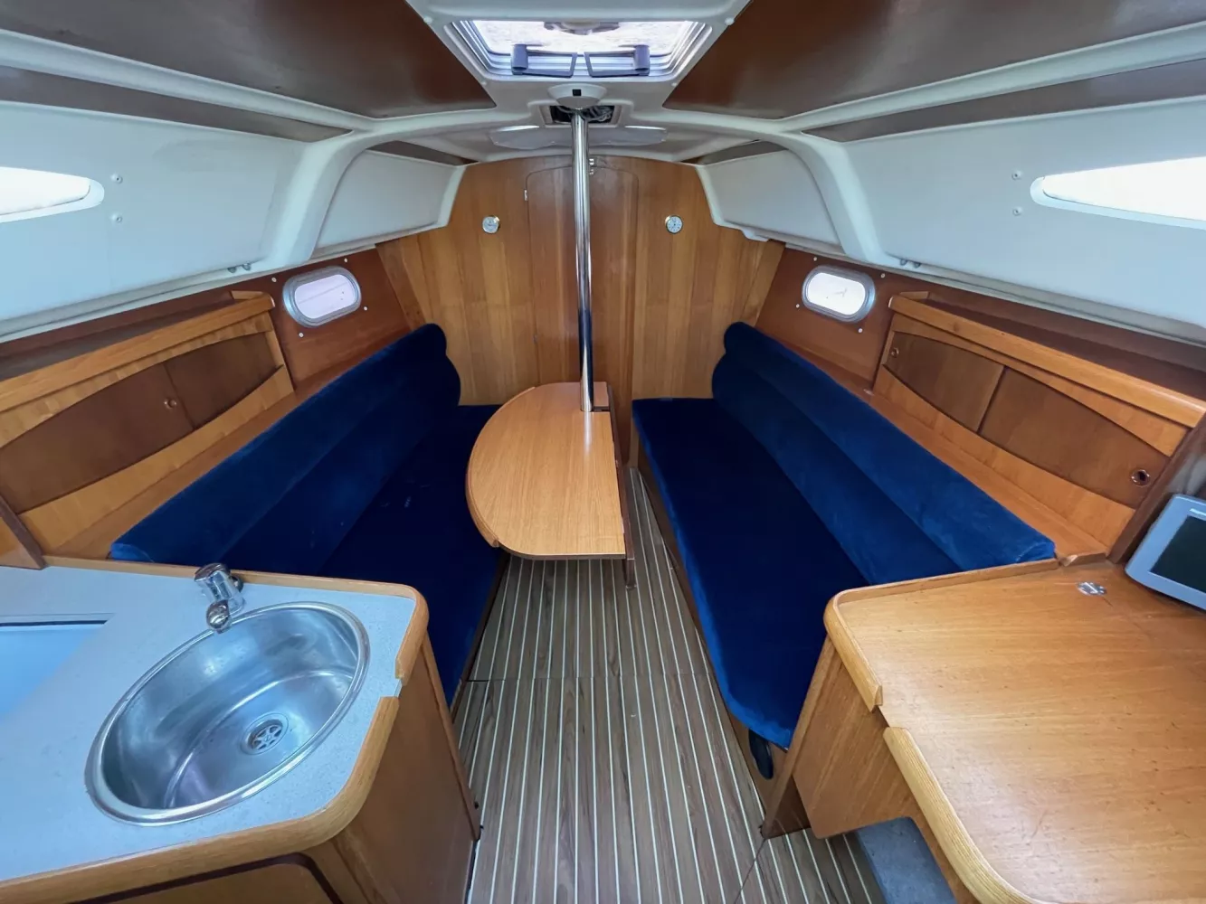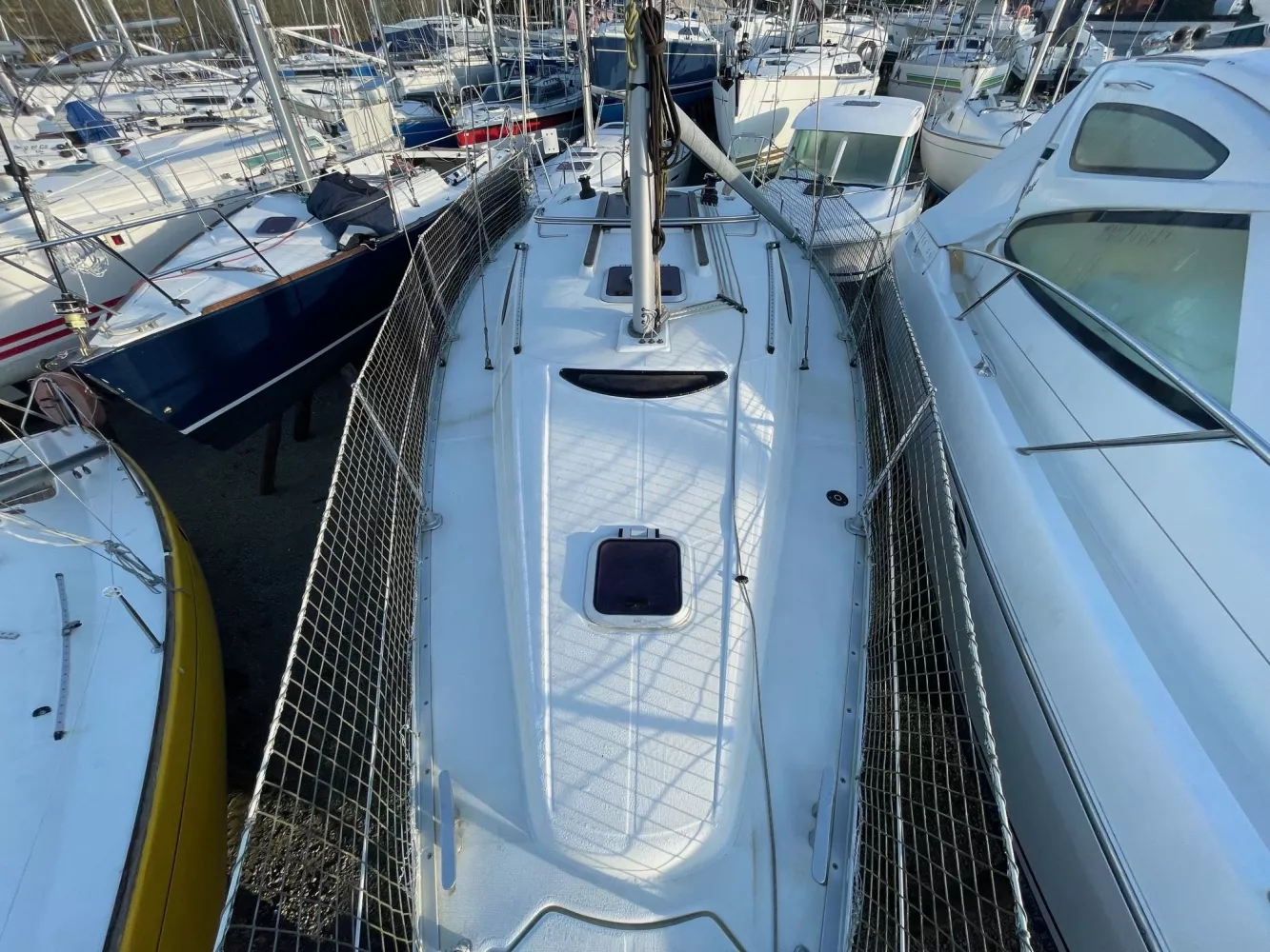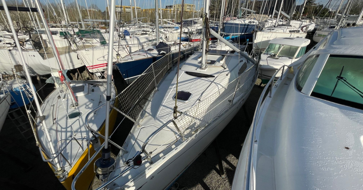 Version Quillard avec 1,40 mètre de tirant d’eau / 8,50 mètres de long / 2,98 mètres de large / Moteur inbord Yanmar en ligne d’arbre avec hélice bipale fixe avec coupe-orin / 1 batterie moteur et 1 batterie de servitude récentes / Grand-voile Elvstrom semi-lattée d’origine / Génois sur enrouleur All Purpose de 2020 / Lazy bag / Lazy jack / Plate-forme de bain arrière / Douchette de cockpit eau chaude / Grand coffre de cockpit tribord / Table de cockpit / Assises en teck / Coussins de cockpit / Capote de roof / Prise de quai / Girouette / Chargeur de batterie / Circuit 12 V-220 V / GPS Raymarine / Loch / Speedo / Sondeur Raymarine Tridata / VHF fixe Navicom 2014 / Poste radio / Carré central avec banquettes latérales / Cuisine en L sur bâbord avec réchaud à gaz double, évier, réfrigérateur 12 V et nombreux rangements / Table à carte sur tribord / Salle d’eau avec douche, évier et WC marin / Chauffe-eau / Nombreux rangements / Annexe / Kit amarrage / Kit mouillage / Armement côtier.