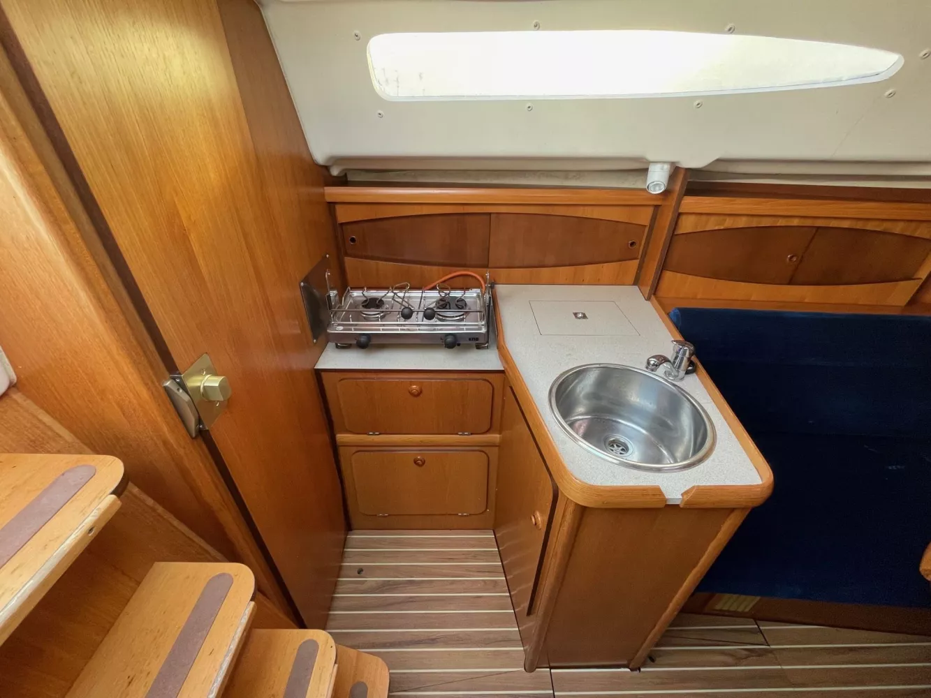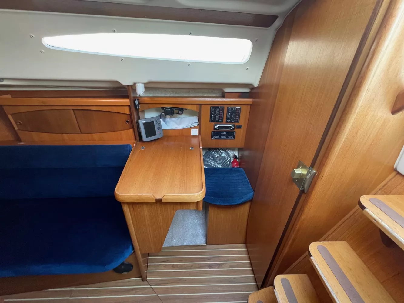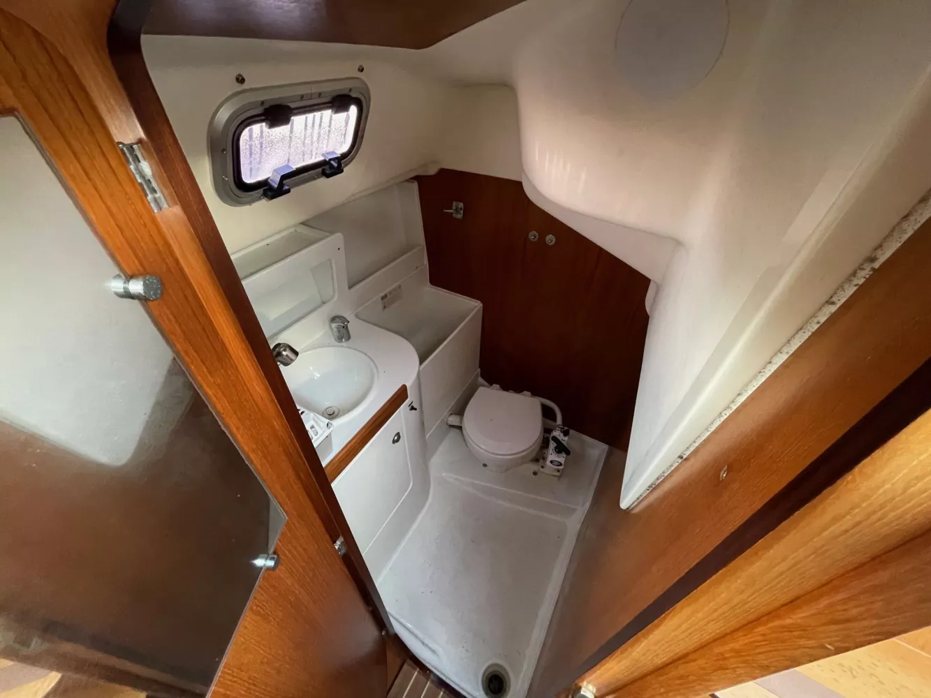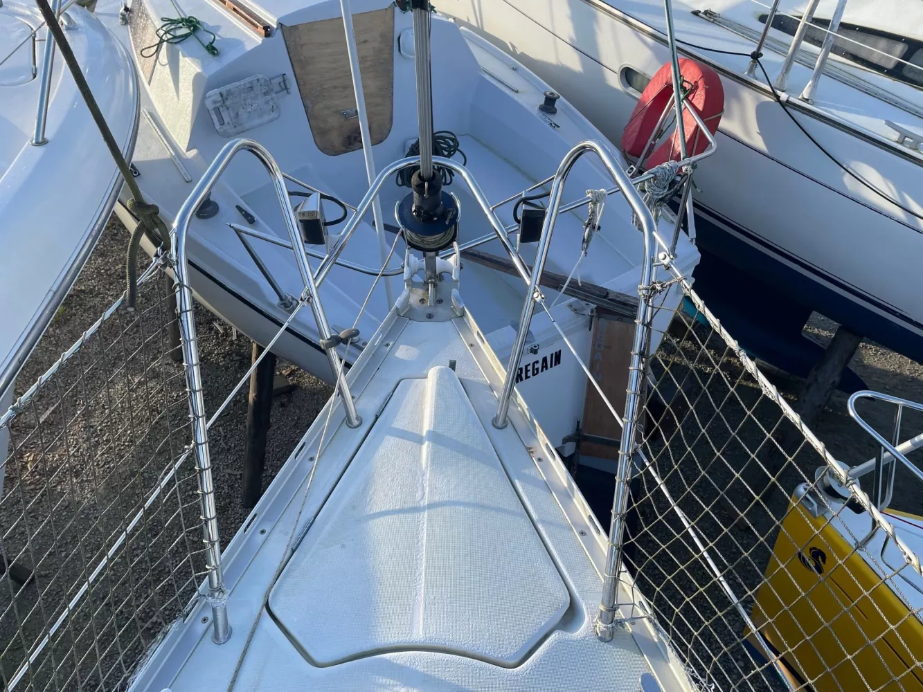 Version Quillard avec 1,40 mètre de tirant d’eau / 8,50 mètres de long / 2,98 mètres de large / Moteur inbord Yanmar en ligne d’arbre avec hélice bipale fixe avec coupe-orin / 1 batterie moteur et 1 batterie de servitude récentes / Grand-voile Elvstrom semi-lattée d’origine / Génois sur enrouleur All Purpose de 2020 / Lazy bag / Lazy jack / Plate-forme de bain arrière / Douchette de cockpit eau chaude / Grand coffre de cockpit tribord / Table de cockpit / Assises en teck / Coussins de cockpit / Capote de roof / Prise de quai / Girouette / Chargeur de batterie / Circuit 12 V-220 V / GPS Raymarine / Loch / Speedo / Sondeur Raymarine Tridata / VHF fixe Navicom 2014 / Poste radio / Carré central avec banquettes latérales / Cuisine en L sur bâbord avec réchaud à gaz double, évier, réfrigérateur 12 V et nombreux rangements / Table à carte sur tribord / Salle d’eau avec douche, évier et WC marin / Chauffe-eau / Nombreux rangements / Annexe / Kit amarrage / Kit mouillage / Armement côtier.