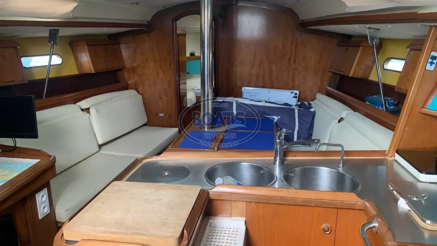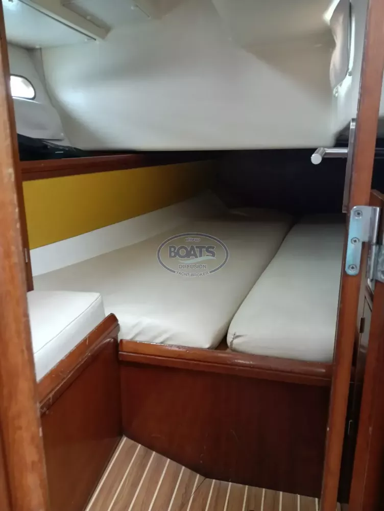 Jeanneau Sun Fast 42 (1997) prêt à partir: GV 2021, génois 2021, étai/enrouleurs neufs 03/2025, trinquette sur enrouleur. Electronique 2019: pilote Raymarine EV400 + vérin hydraulique, pack I70, AIS Tx/Rx. Double GPS Garmin (barre + table), VHF RT750/RT420+. Autonomie: 300 W solaire + hydrogénérateur Seatronic 2023. Confort: frigo Dometic 2019, chauffage Webasto 2019, plaque + four + induction. Moteur Yanmar 4JH2E 50 ch, inverseur reconditionné 2021. Annexe + HB 4T 2,6 ch 2021.