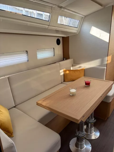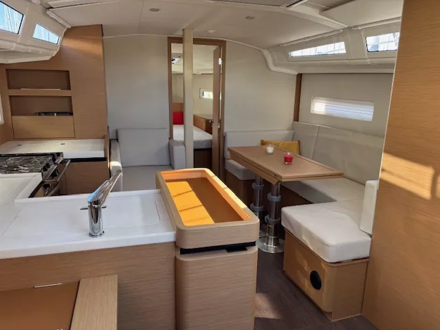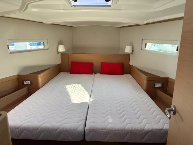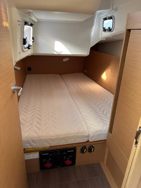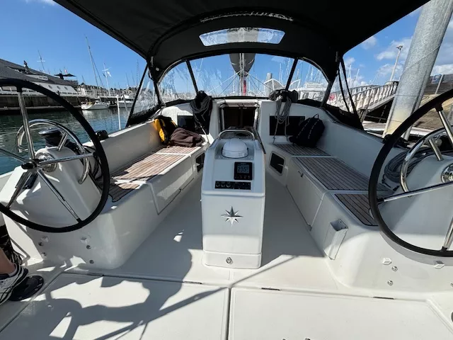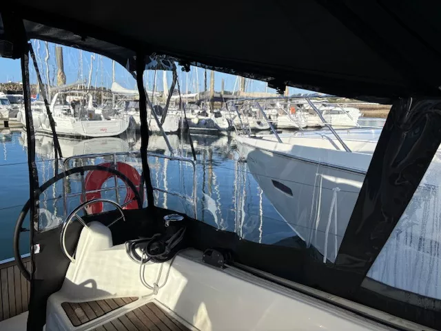 SO 410 2023 livré en juin 2024. Etat neuf (seulement 8 sorties en baie de Quiberon). Version 3 cabines 1 salle d'eau + meuble lavabo cabine propriétaire. Finition préférence comprenant delphinière, double commande de guindeau + compteur de chaîne, table cockpit teck multifonctions, alim 220 V, prises USB dans cabines, ecran supervision navicolor, capteur monitoring de batteries, four luxe, 2 batteries supplémentaires, éclairage intérieur led, appliques d'ambiance, eclairage cockpit, vaigrages capitonnés dans le carré, cave à vin, stores, coussins d'assise dans le cockpit, pack downwind, pack électronique offshore, télécommande de pilote automatique, pack entertainment audio, winch roof électrique, kit amarrage, kit mouillage, capote de roof + bimini + extensions pour couvrir la totalité du cockpit, housse de table, propulseur d'étrave, prise eau douce de quai, chauffage, armement complet