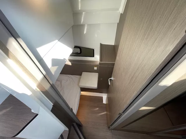 FINITION PREMIERE COMPRENANT: GUINDEAU ELECTRIQUE - DOUCHETTE DE COCKPIT (eau froide et eau chaude) - ECLAIRAGE D’AMBIANCE INTERIEUR A LEDS - FLAPS ELECTRIQUES - CHAUFFE-EAU 220V - RIDEAUX INTERIEURS - TAQUETS D’AMARRAGE CROISÉS - SELLERIE CARRE EN SIMILI CUIR DOLCE ARTESIAN