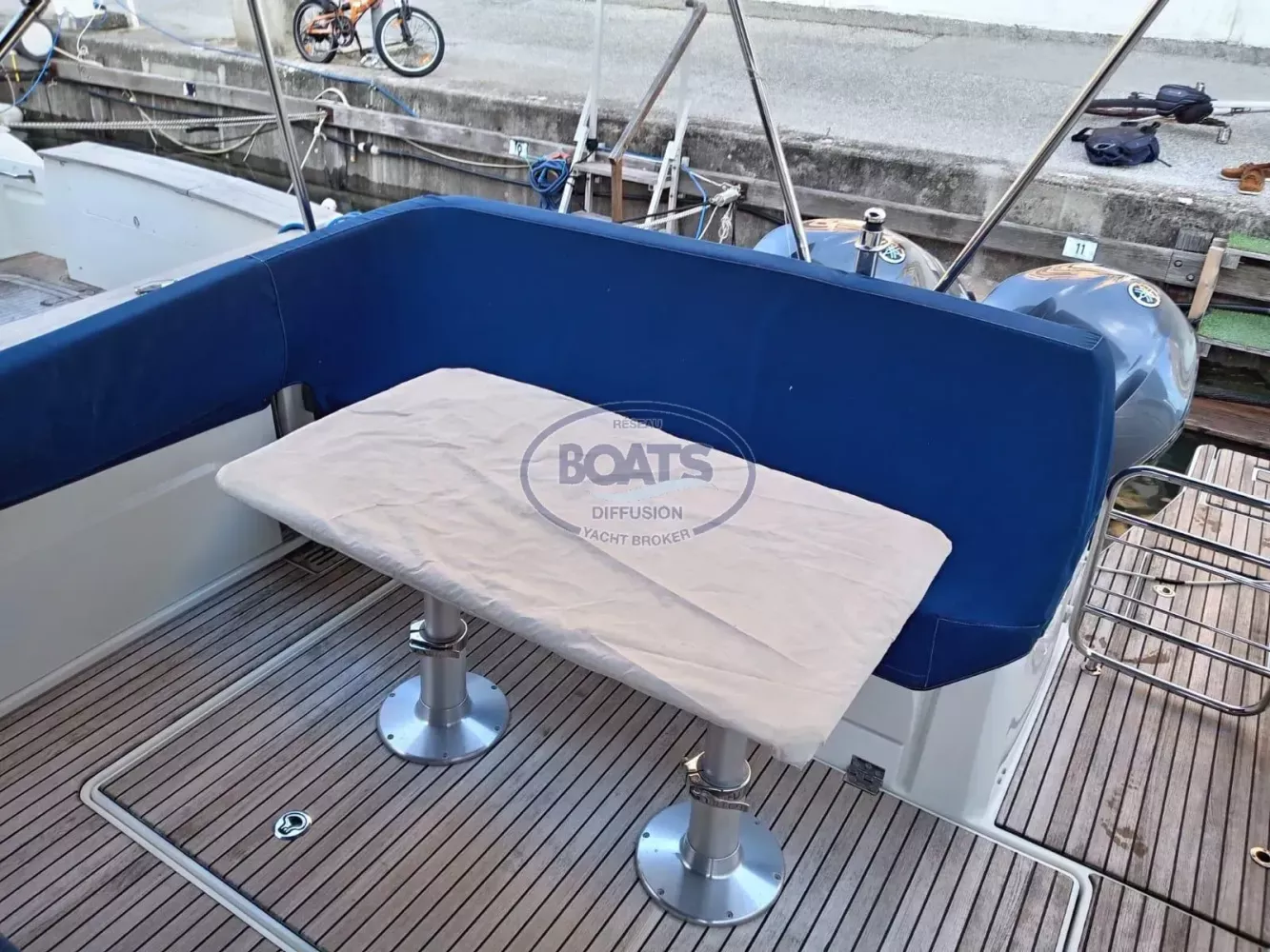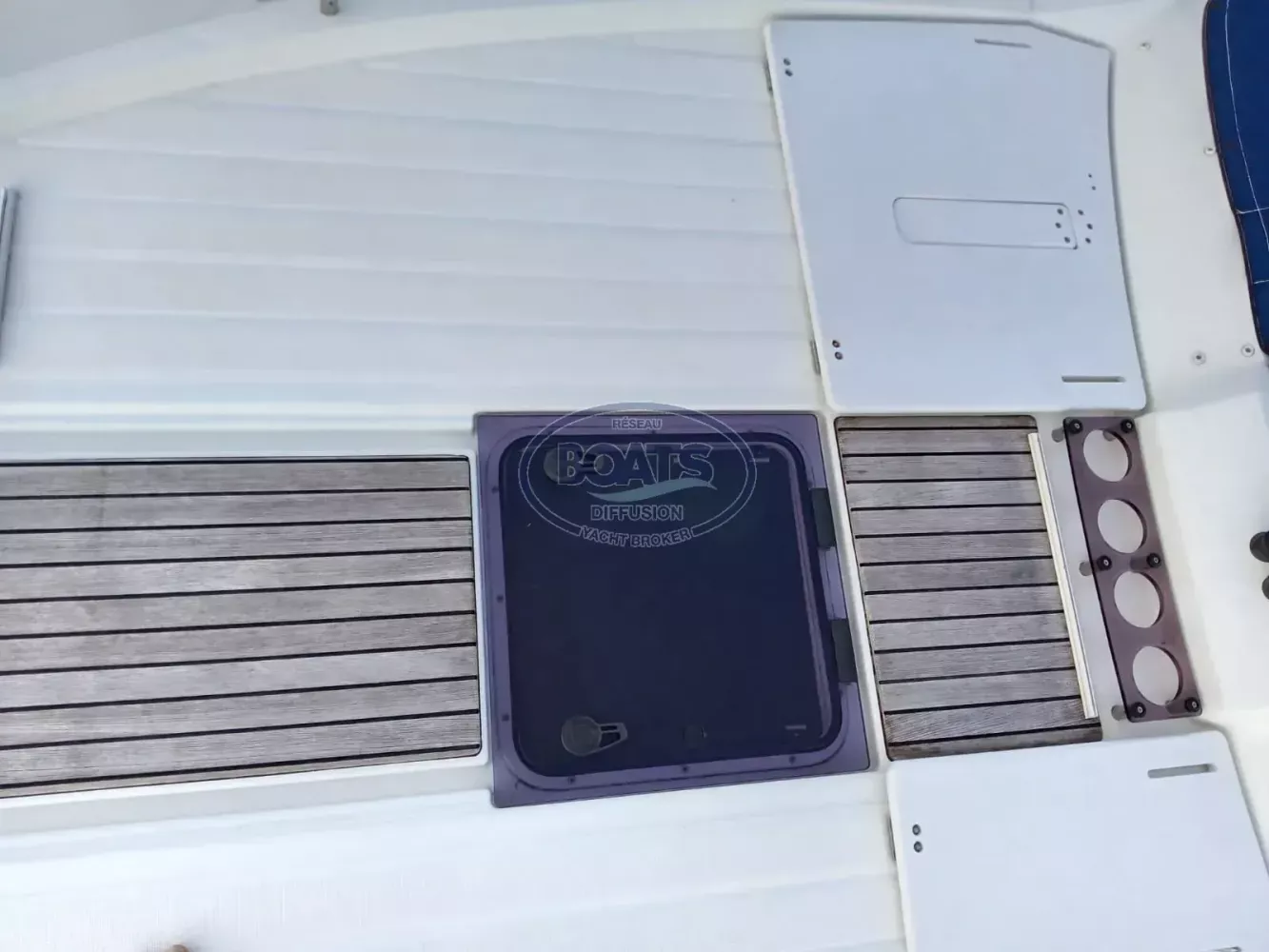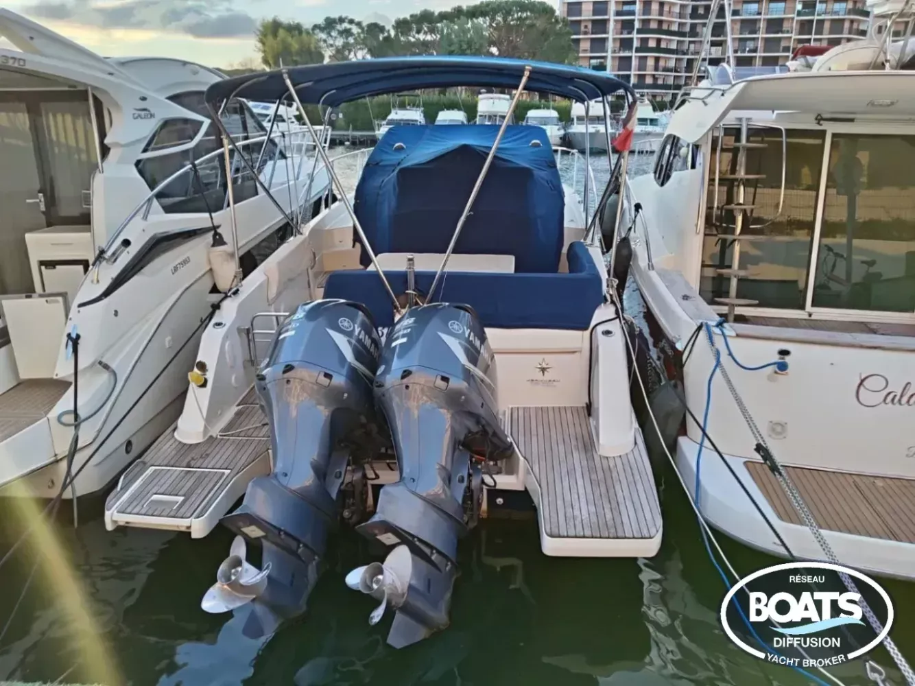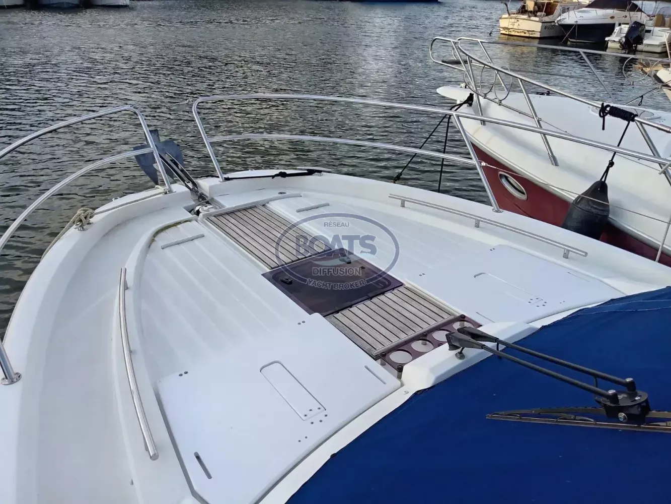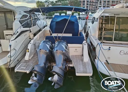 Cap Camarat Série 1, équipé d’une double motorisation révisée en 2025, avec antifouling neuf réalisé la même année. il est équipé de flaps automatiques pour un réglage optimal de l’assiette en navigation.