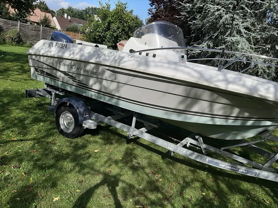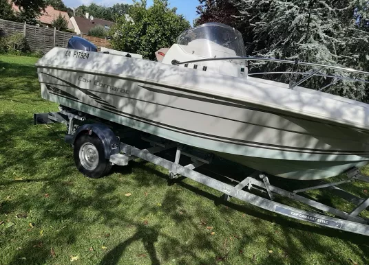 Ensemble de2012 mis à l'eau en 2013. Je revends mon bateau, superbe petite unité, bien entretenue avec tous les coussins en très bon état car remisés avec la table non servis. Nombreux .porte-cannes en inox et autres. Matériels de sécurité et amarrages complets.Ancre flottante....
