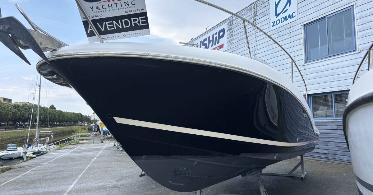 À vendre : Jeanneau Cap Camarat 7.55 Walkaround de 2014, équipé d’un moteur Suzuki 250 chevaux commande électrique (468 heures). Ce bateau est dans un état concours, entretenu avec soin. Élégante ligne sportive, coque habillée d’un covering noir.