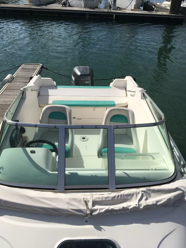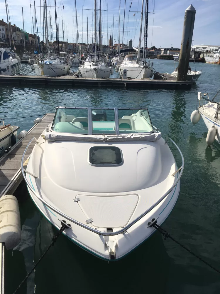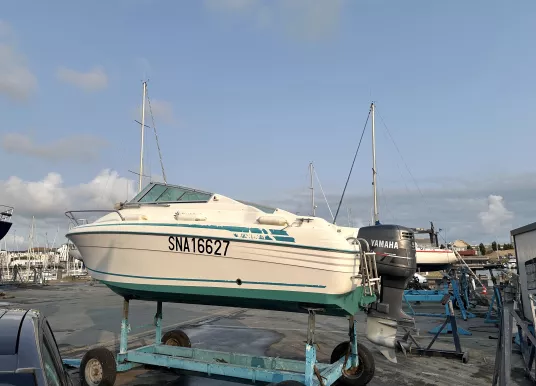 Leader 605 HB Yamaha 2T 150cv V6 (590h) juin 1997 - barre hydraulique, taud hivernage et taud de pluie - travaux à prévoir sur compteurs, hélice, feux de position et power trim - équipement de sécurité à jour (6 gilets adulte + 1 enfant, feux à mains, extincteur, bouée fer à cheval, 3 objets flottants) - échelle de bain, douchette, table pique-nique avec pied pour intérieur ou extérieur - skis, wake-board, palonniers, flamme orange, réservoir additionnel 20l, compas, sondeur et VHF hors d'usage, carénage juin 2025 (antifouling, bougies, vidange embase, calorstat, anode)