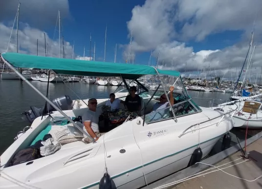 Moteur neuf GM 4.3L V6 essence remplacé en 2021, hivernage secavec entretien annuel, GPS 2023, vhf fixe, guindeau électrique ,frigo,WC,réchaud gaz,2 batteries avec coupleur et branchement à quai 220v, bimini et taud, remorque avec C.G, 7 personnes, année 98, couchage 3 pers.