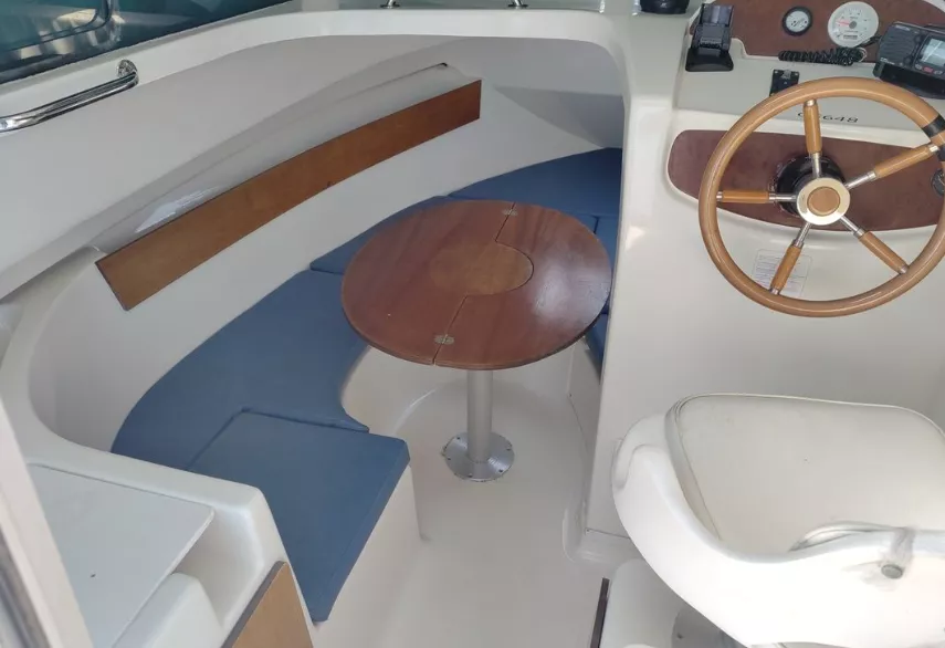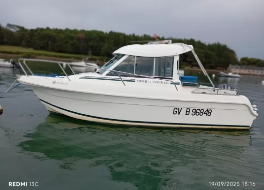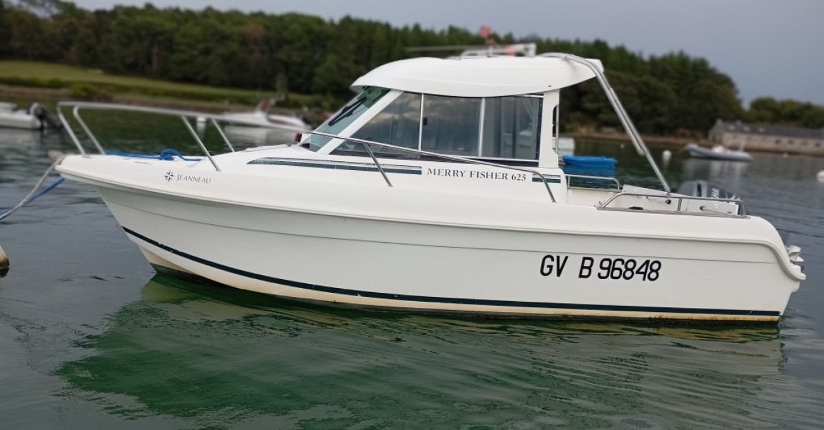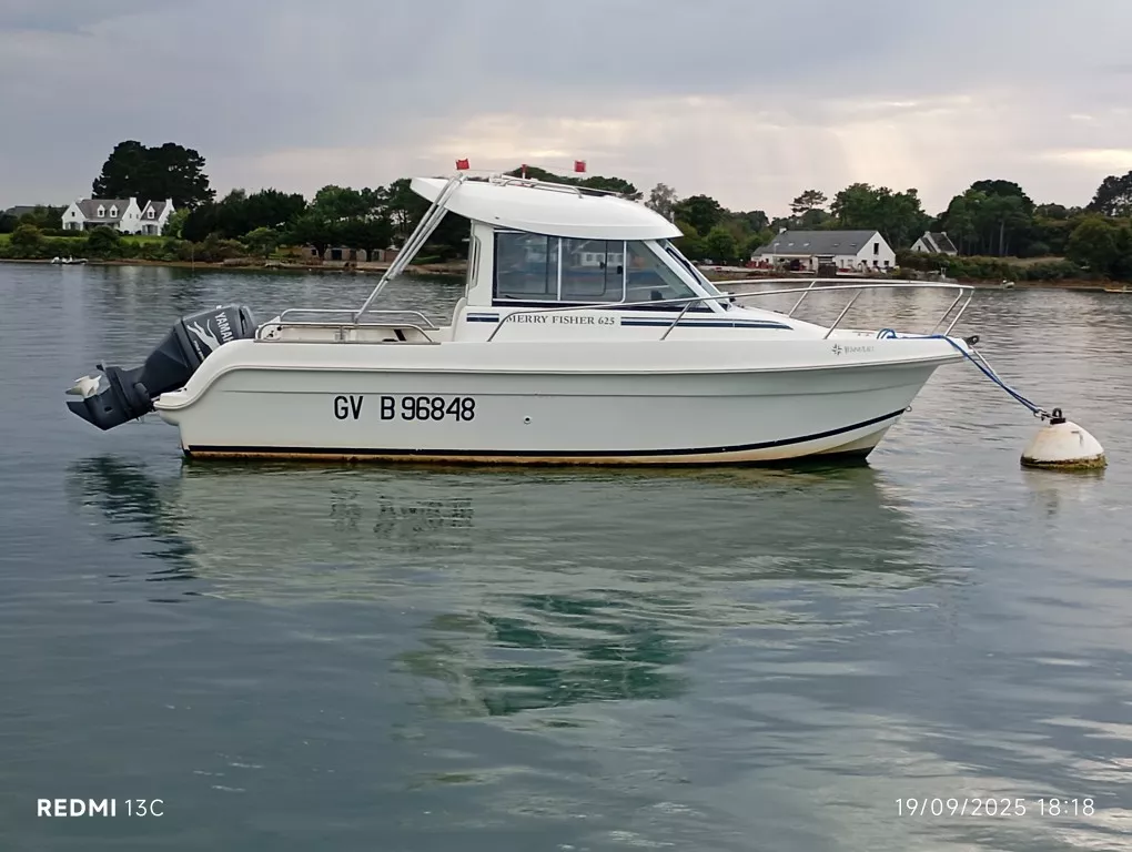 MERRY FISHER 625 Annee 2003. Moteur Yamaha 100CV .900 heures. révisé (facture) changement de courroie effectué à titre préventif en 2024. Combiné Sondeur/GPS humminbird 859 C VHF fixe. taud de soleil de marque Jeanneau . Toilettes chimiques. coussins intérieurs et extérieurs. réchaud à gaz intérieur. petit point d'eau douce à pompe manuelle et lavabo. Bel état de présentation.