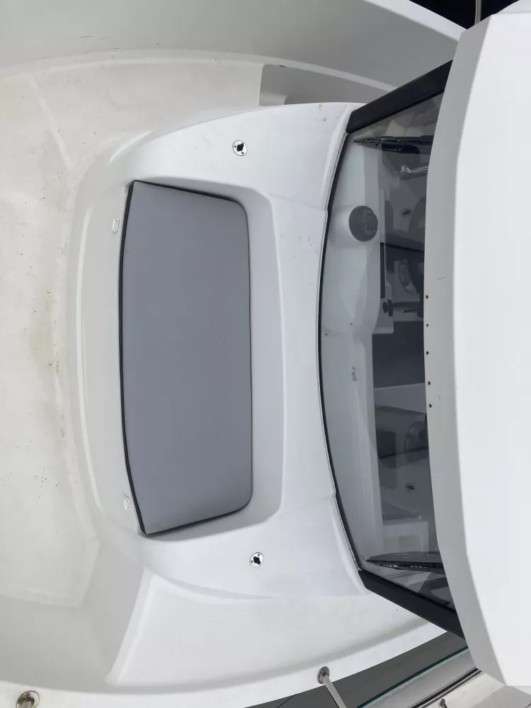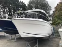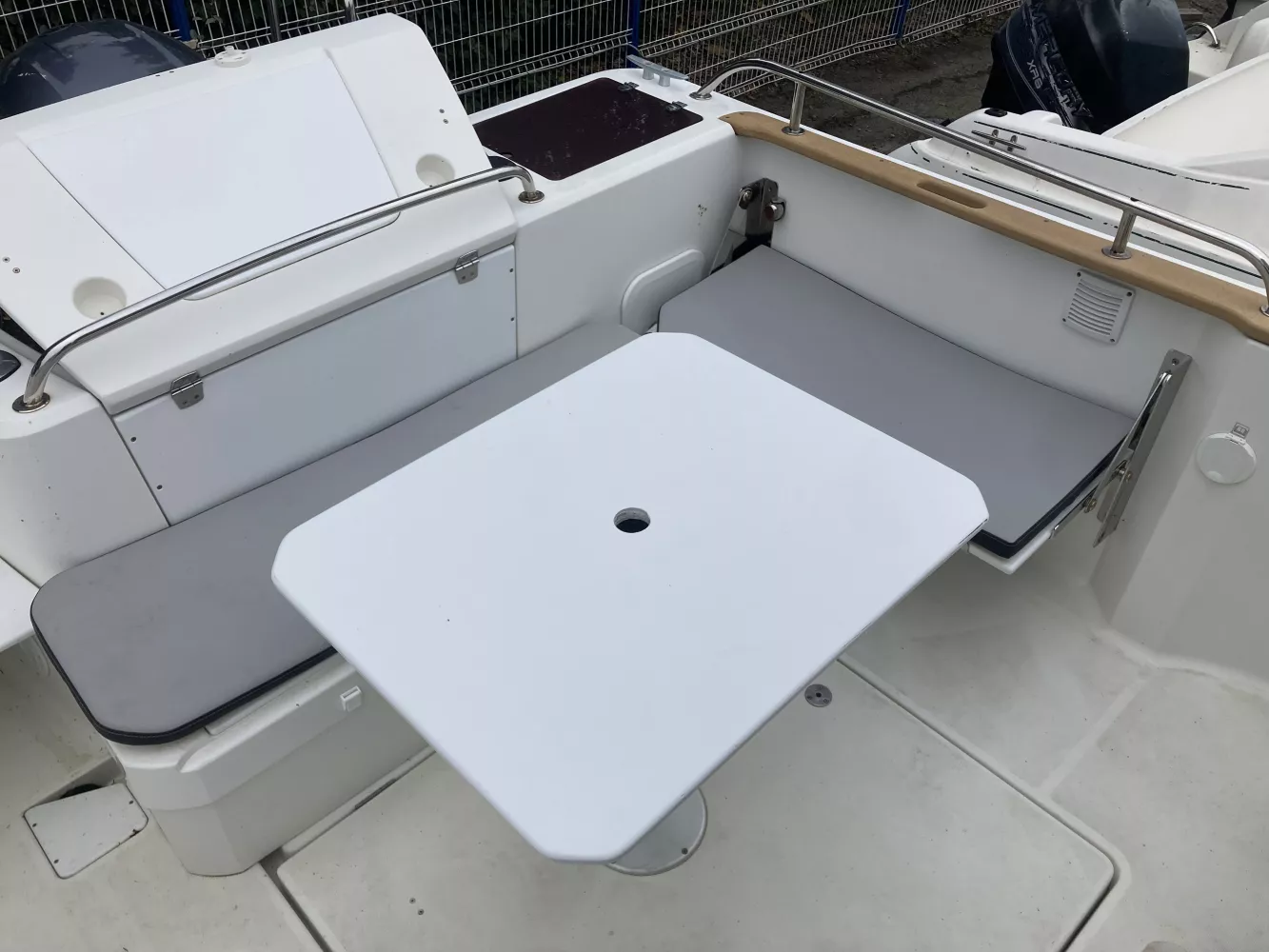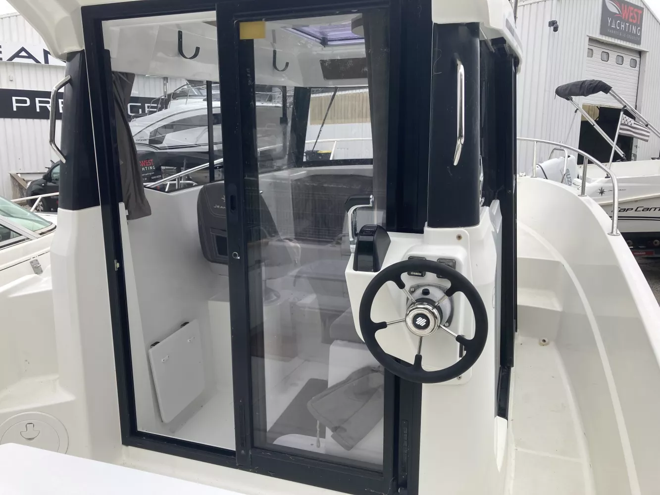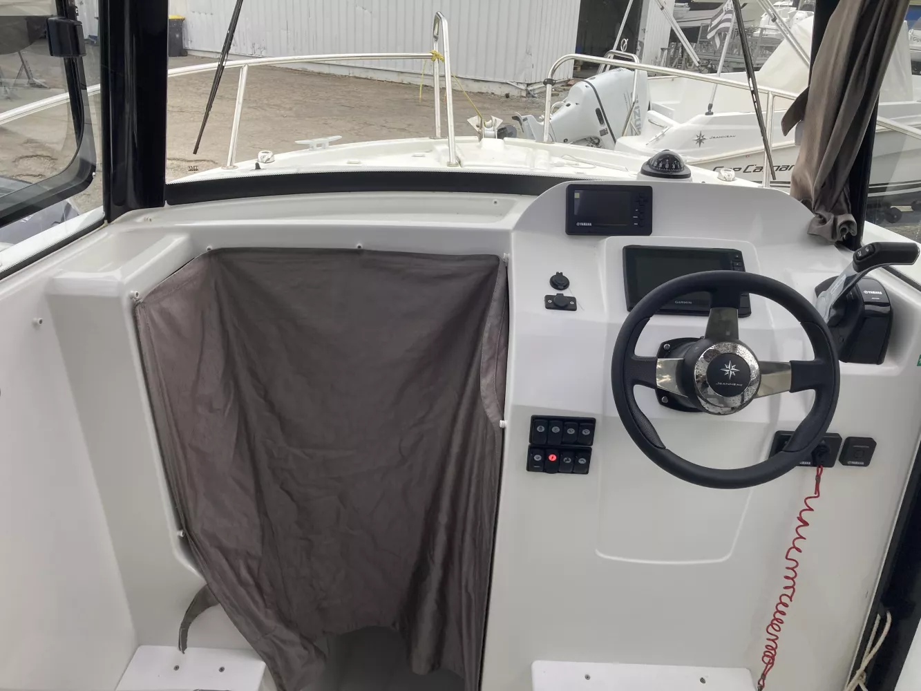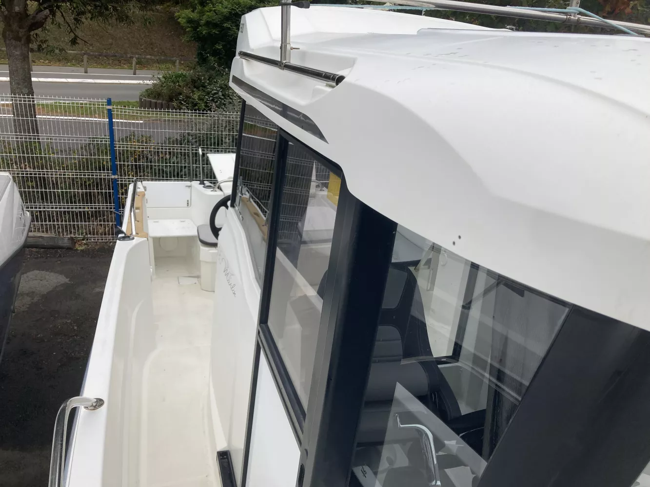 Équipements : Version avec double commande déportée dans le cockpit // Compartiment fermé et hubot ouvrant // Finition Première // Pack électronique GARMIN 7" // Guindeau électrique // Plateformes de bain lattées teck // Banquette latérale repliable luxe // Pack circuit eau douce // Kit peche // Vivier avec prise d'eau de mer // Table de cockpit // Coussins de cockpit avant et arrière // Douchette de cockpit // Rideaux intérieurs de timonerie // WC marin avec réservoir à eaux noires // Armement de sécurité cotier // Kit amarrage // Kit mouillage.