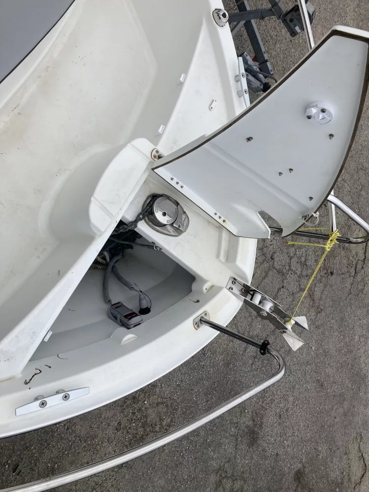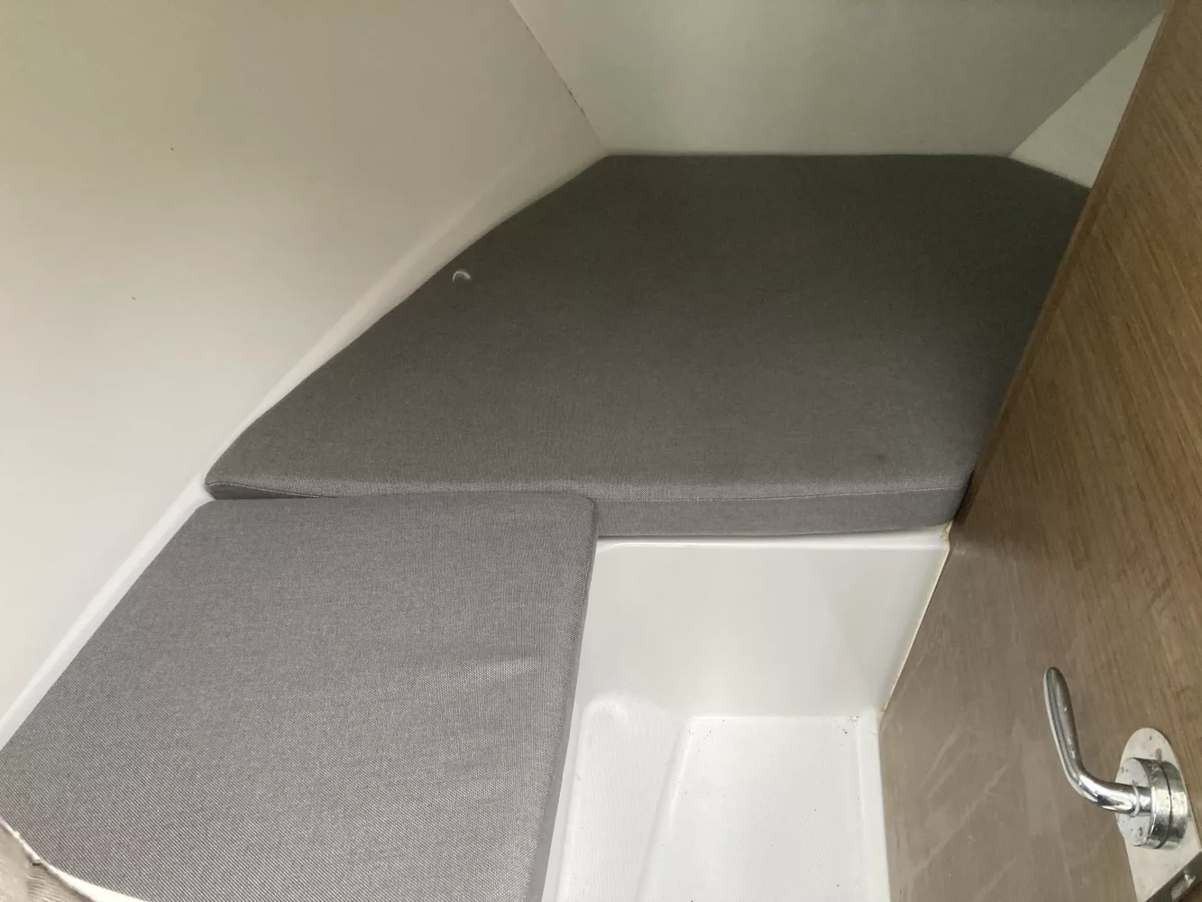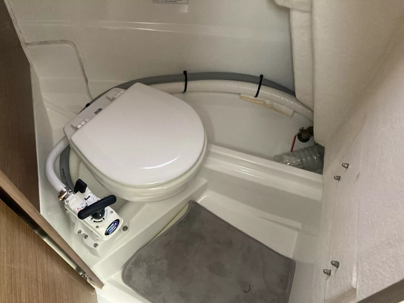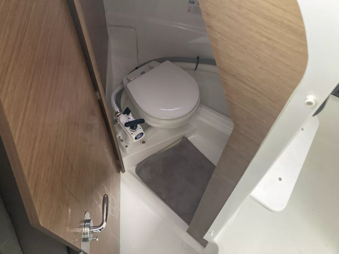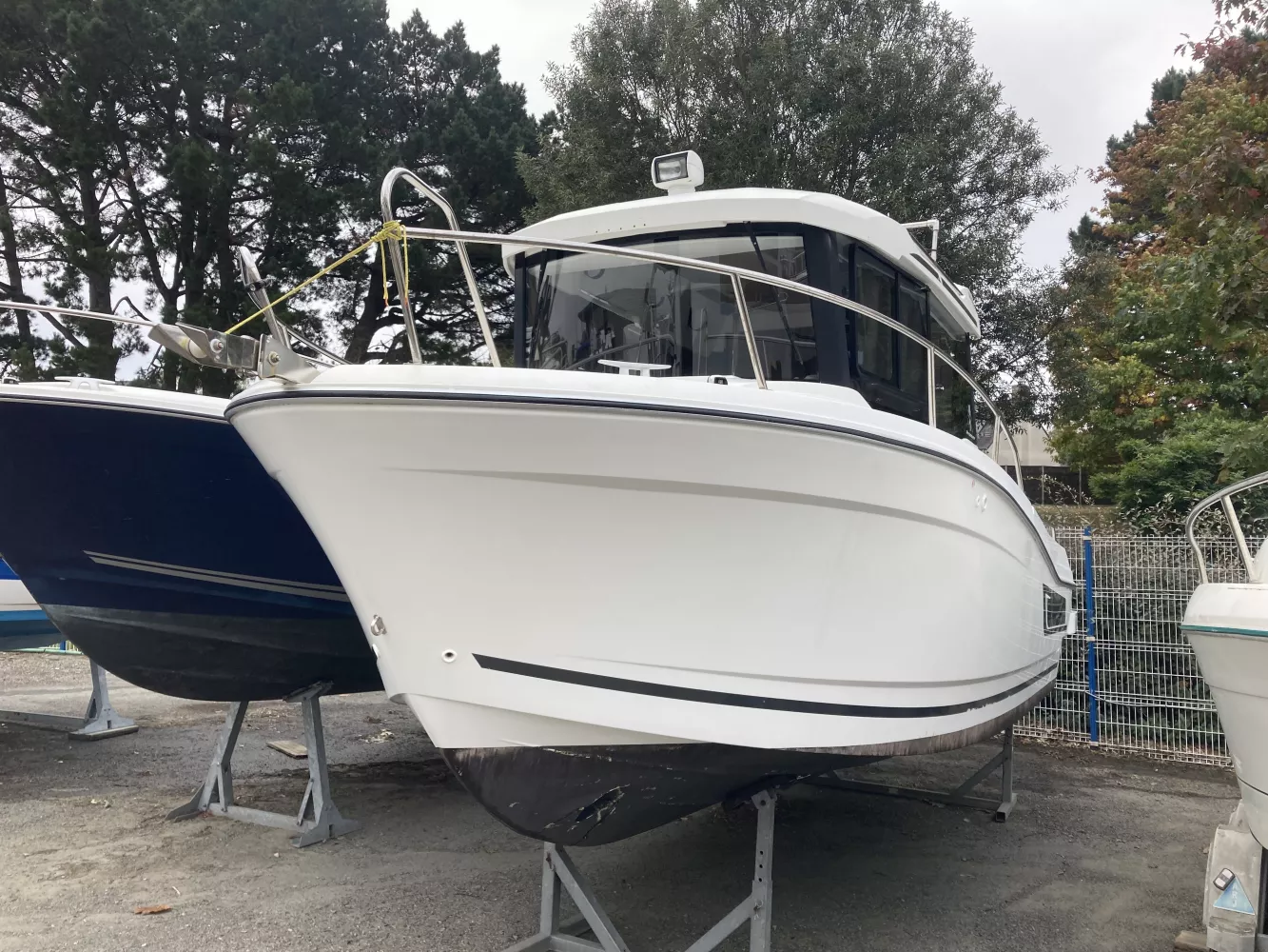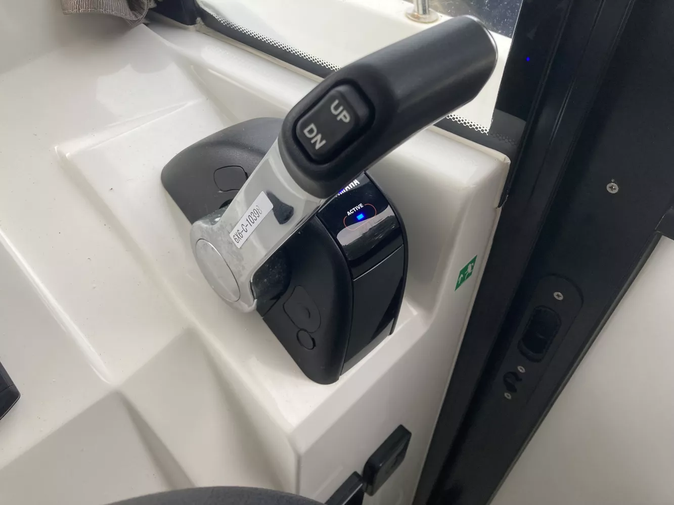 Équipements : Version avec double commande déportée dans le cockpit // Compartiment fermé et hubot ouvrant // Finition Première // Pack électronique GARMIN 7" // Guindeau électrique // Plateformes de bain lattées teck // Banquette latérale repliable luxe // Pack circuit eau douce // Kit peche // Vivier avec prise d'eau de mer // Table de cockpit // Coussins de cockpit avant et arrière // Douchette de cockpit // Rideaux intérieurs de timonerie // WC marin avec réservoir à eaux noires // Armement de sécurité cotier // Kit amarrage // Kit mouillage.