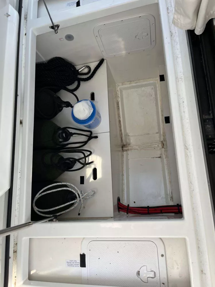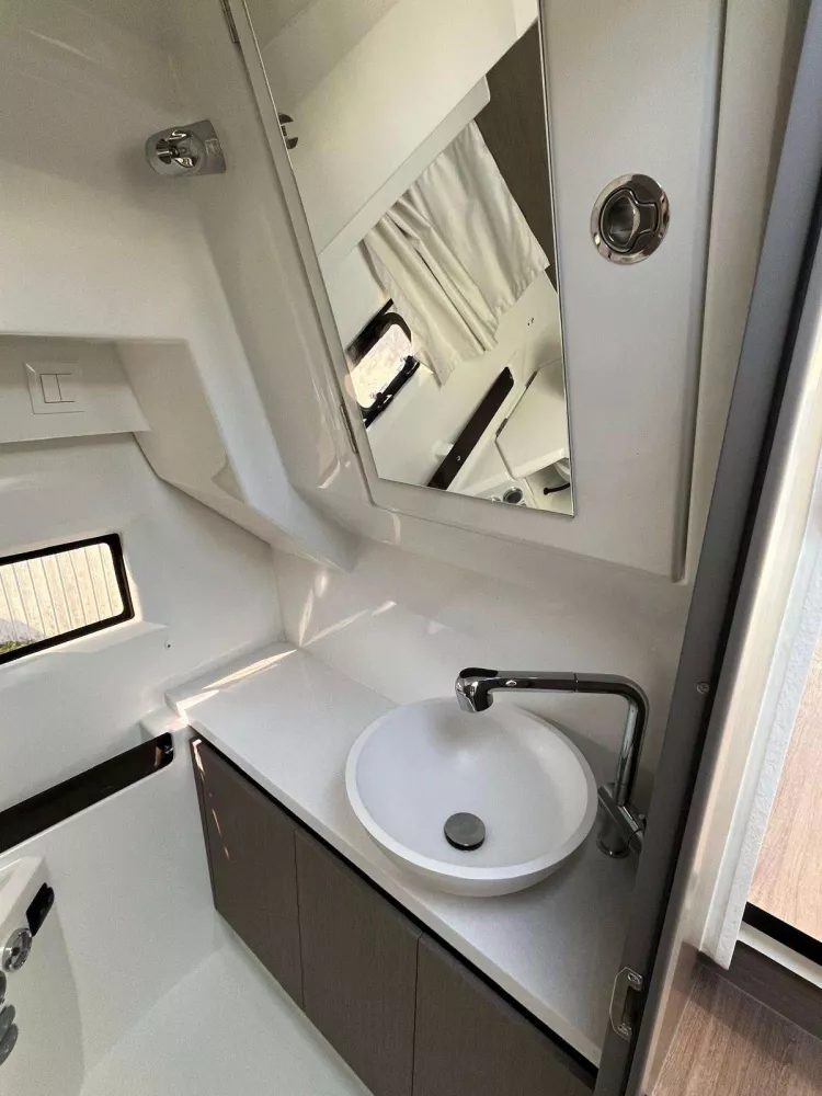 • FINITION PREMIÈRE comprenant : Guindeau électrique, coussins de cockpit arrière, réfrigérateur 60L, Douchette de cockpit, Éclairage à LED, Assise de toilette, Bandeau de lit cab avant, anneau de treuillage.
