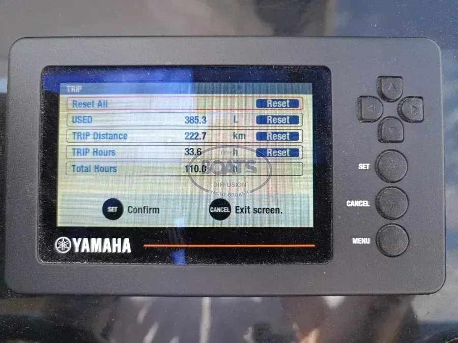 Vedette pour la croisière familiale ou la peche. Dans un état impeccable. Avec 2 cabines spacieuses, un grand carre et une cuisine bien équipé. Propulse par un Yamaha 300 CV ayant juste 110h. Propulseurs avant/arrière pour une maniabilité aisée. Très peu navigué (2 mois/an), entretien soigné. Gps sondeur Humminbird 785c2i.