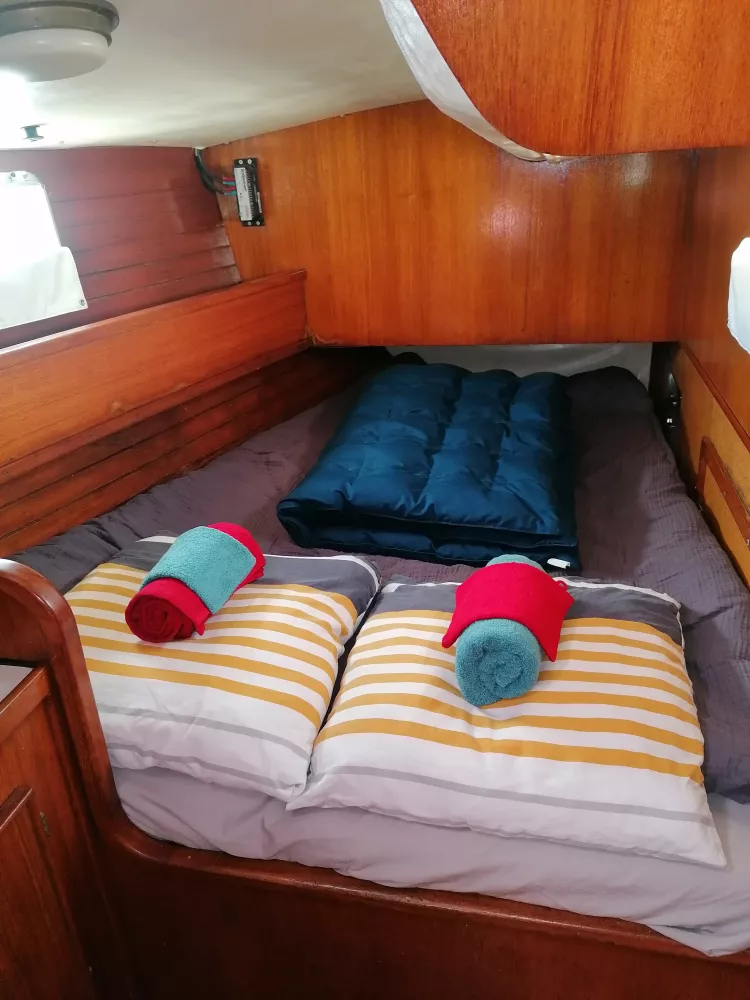 ● Literie et sellerie neuve pour les deux cabines arrières + carré neuf tissus et mousses + stores et rideaux. 2022 et 2024