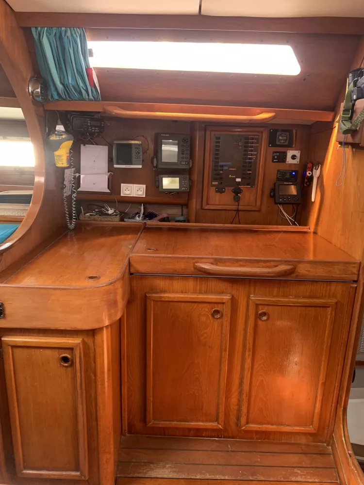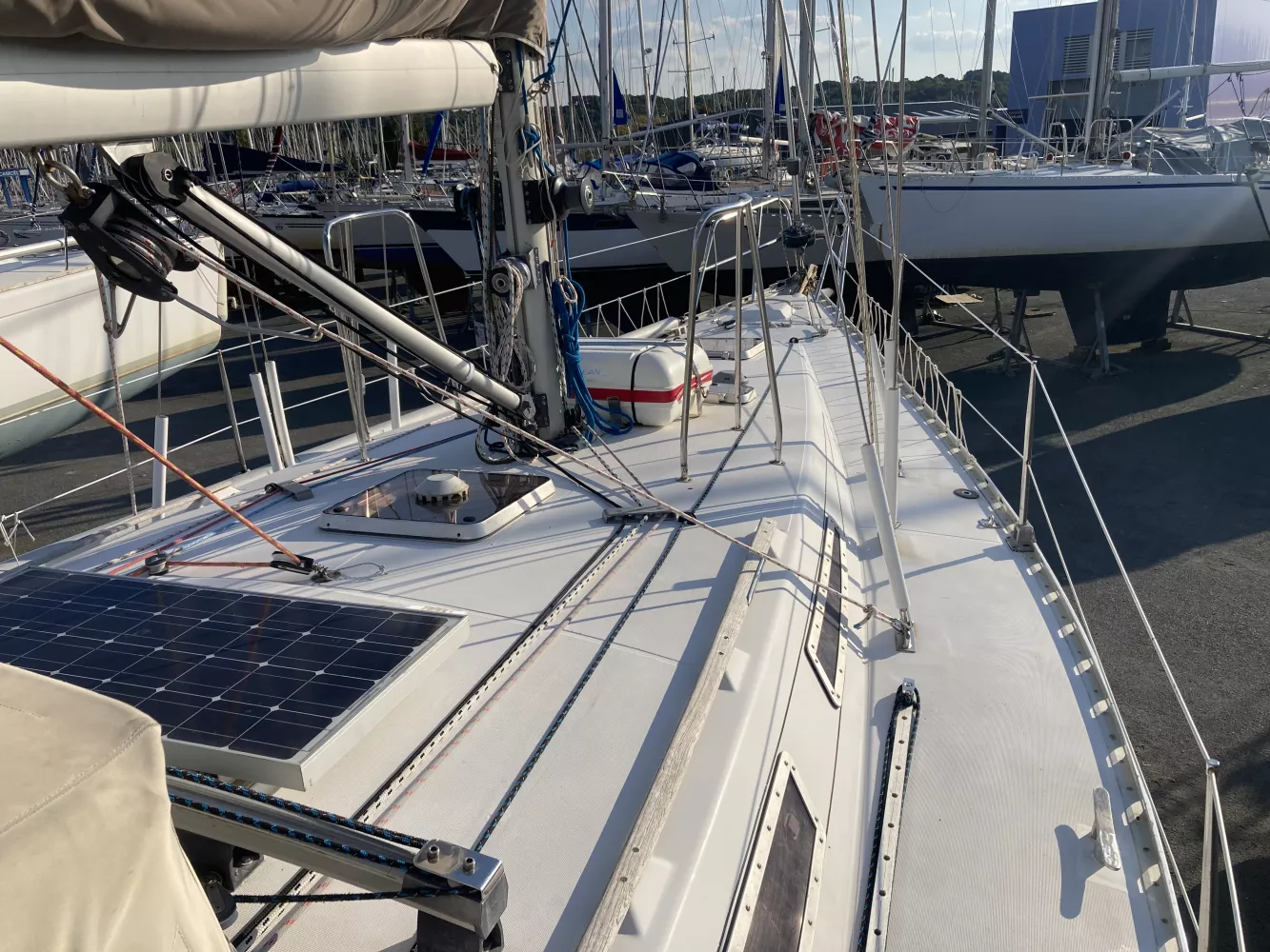 Notre voilier a fait l’objet d’une préparation complète en 2024 et est équipé pour une navigation hauturière. Bateau à sec visible à Arzal (56).