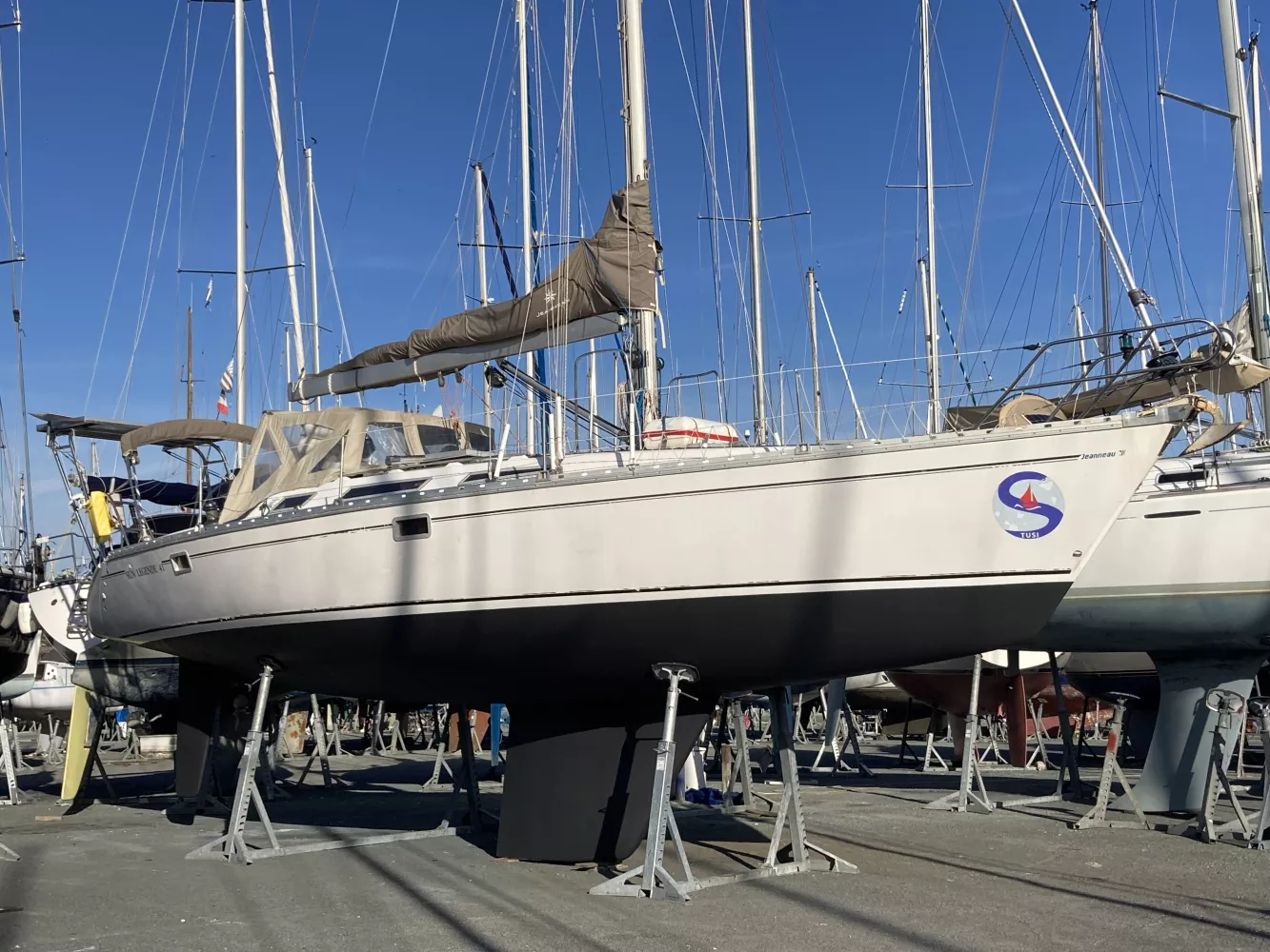 Nous vendons notre voilier Djam après deux ans et demi de bons et loyaux services. Nous l’avons acheté en 2023 pour notre projet de boucle Atlantique en famille (2 adultes + 2 ados et 1 enfant), que nous avons réalisé d’août 2024 à juillet 2025. Nous sommes les quatrièmes propriétaires de ce voilier solide et performant construit en 1986 par les chantiers Jeanneau.