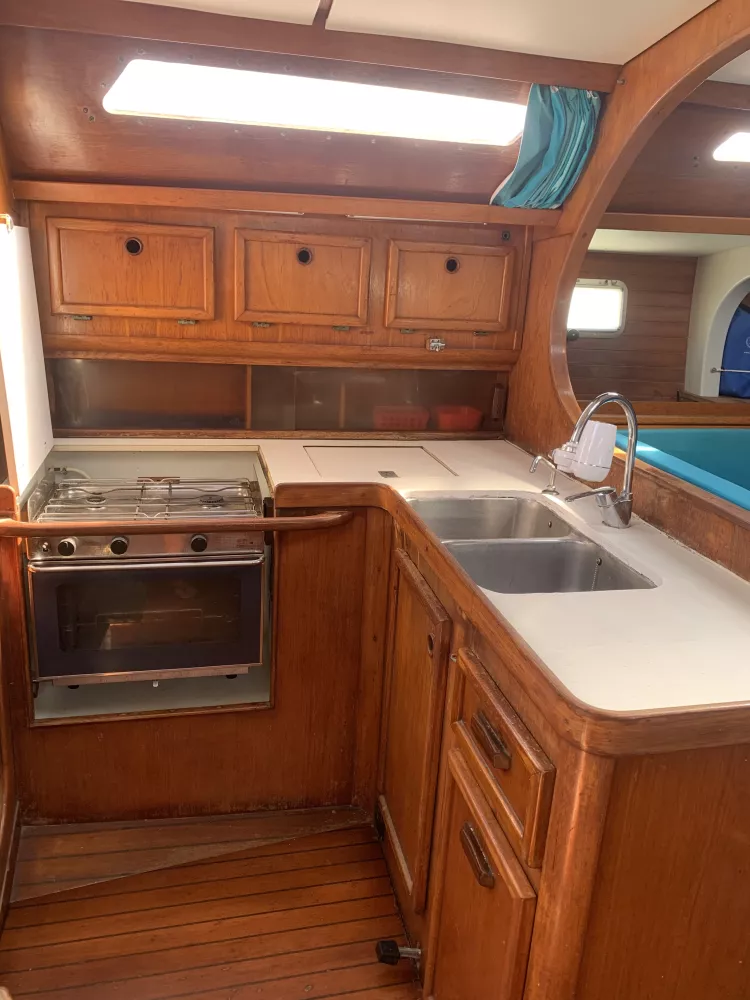 2 frigidaires – un dans la partie cuisine et un sous la table à cartes (commande chantier Jeanneau d’origine). Offre une grande capacité de stockage au frais.