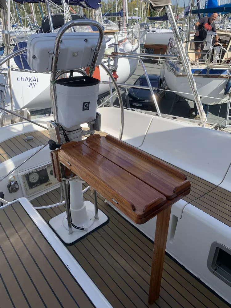 + Ajout d’un portique inox sur mesure en tube de 42 fixé sur la jupe arrière, avec bossoir d’annexe et support de panneau solaire en inox