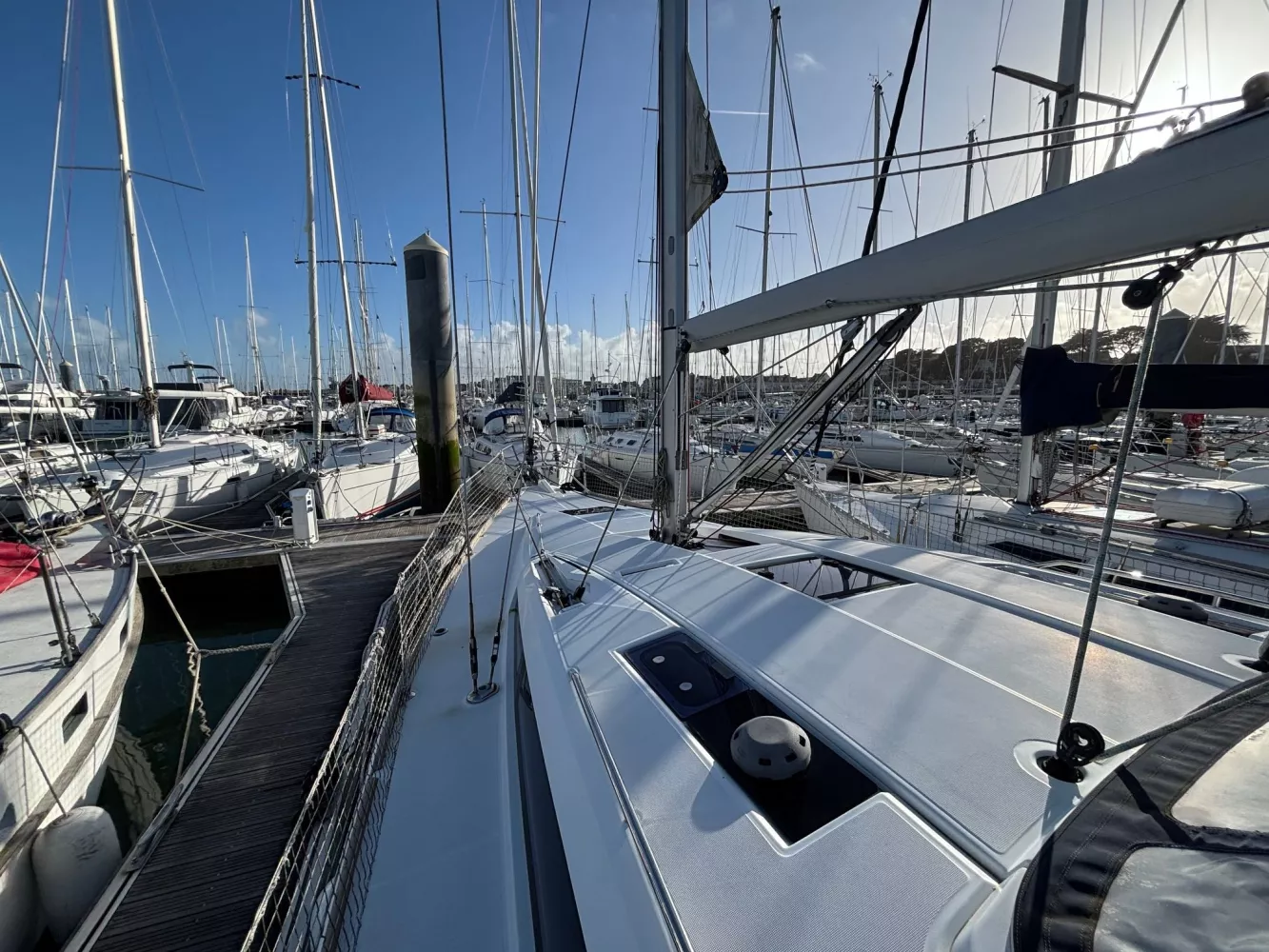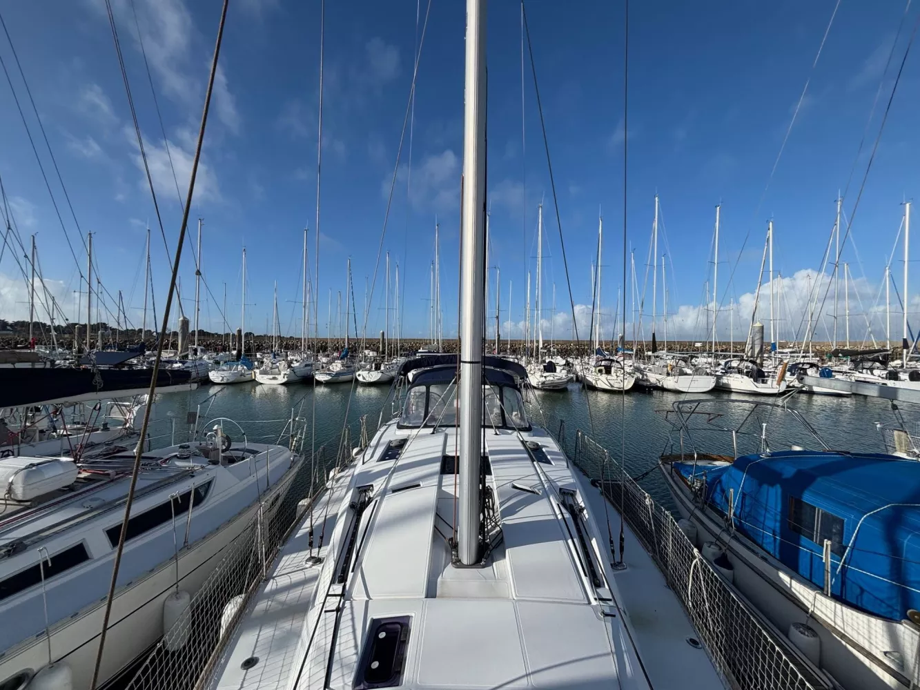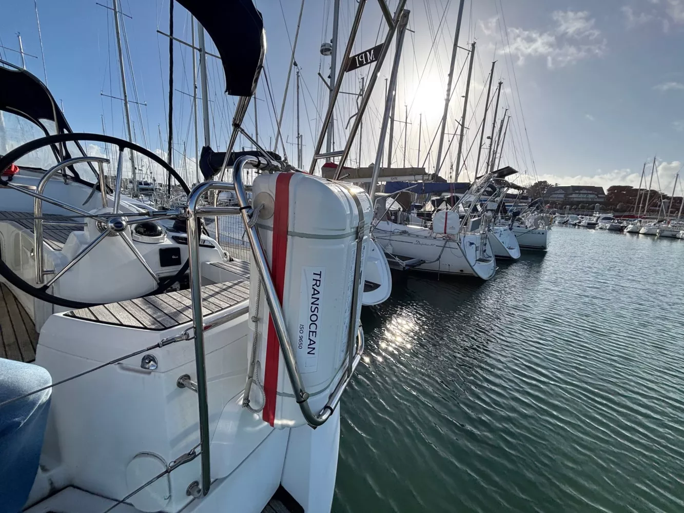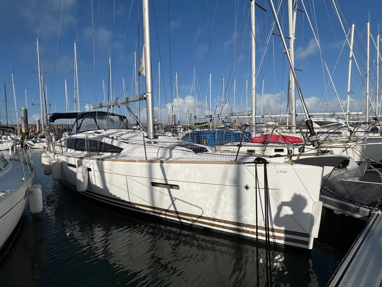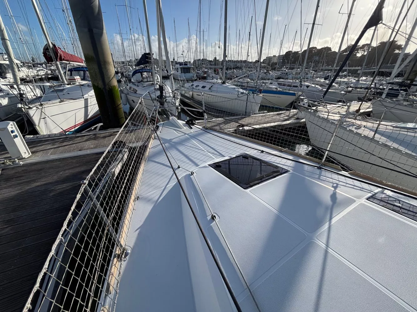 Version 2 cabines / 2 salles d’eau / petit tirant d’eau monosafran / Eau douce : 500 litres / Carburant : 200 litres / Grand-voile sur mât enrouleur / Génois enrouleur / Gréement de spi asymétrique / Accastillage de spi / Winch de roof à tribord / Kit amarrage et kit mouillage / Pack électronique offshore full Raymarine / Télécommande pilote / Pilote automatique / GPS sur pod orientable / Traceur / Sondeur / Guindeau électrique / Double commande de guindeau + compteur / Deuxième davier pour l’ancre + sous-barbe / Taquet au maitre-bau / Prise de quai 220 V / Chargeur de batteries / Batteries de bord supplémentaires / Four luxe avec grill / Store pour panneaux et hublots + moustiquaires pour panneaux / Douchette de cockpit eau chaude / Dossiers relevables dans lit cabine avant / Table de carré repliable sur pied télescopique / Couchette double de carré / Portes dans les filières / FUSION RA205 avec Bluetooth / Haut-parleurs BOSE dans le carré / Porte de frigo verticale / Télévision / WC électrique Quiet Flush arrière bâbord / WC manuel avant tribord / Chauffage fuel air pulsé / Séparateur de douche dans la salle d’eau / Capote de roof / Bimini avec éclairage fibres optiques / Haut-parleurs extérieurs / Table de cockpit / Fond de cockpit en teck / Housses de barres à roue / Support moteur HB / Portique avec panneaux solaires / 2 panneaux solaires 150 W / Annexe à fond gonflable avec quille en V de 2,50 m de longueur / Propulseur d’étrave / Radeau de survie / Armement semi-hauturier 6 personnes.