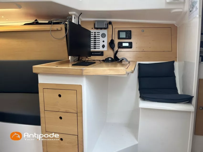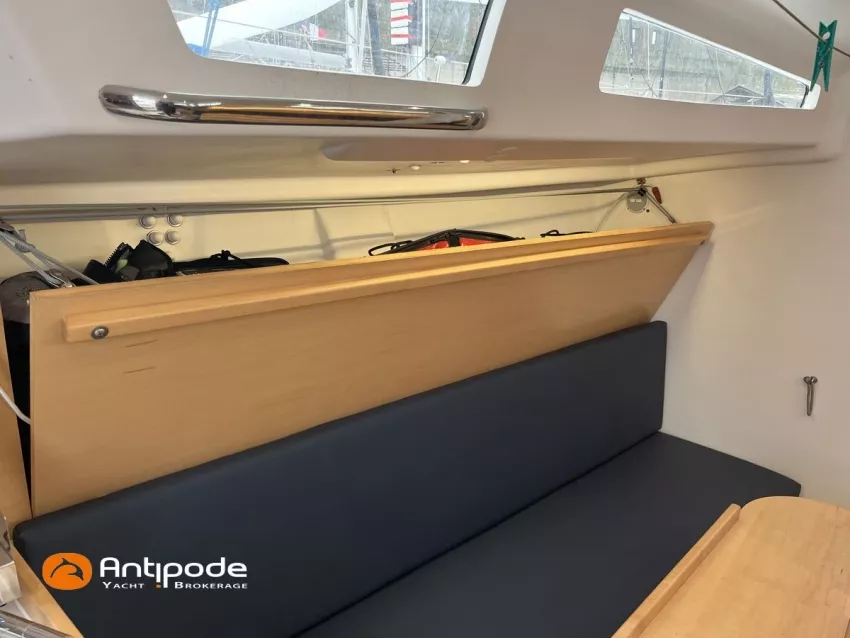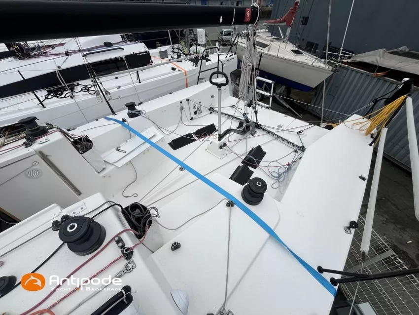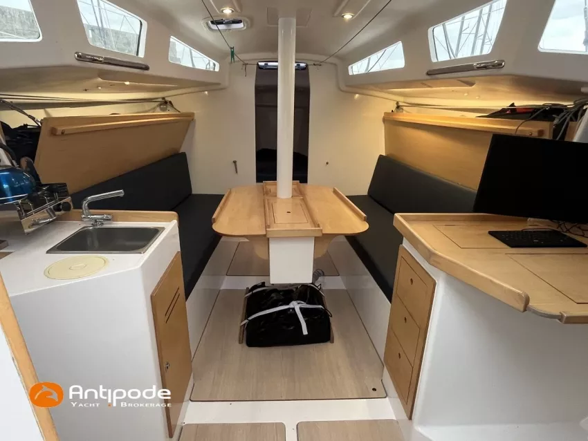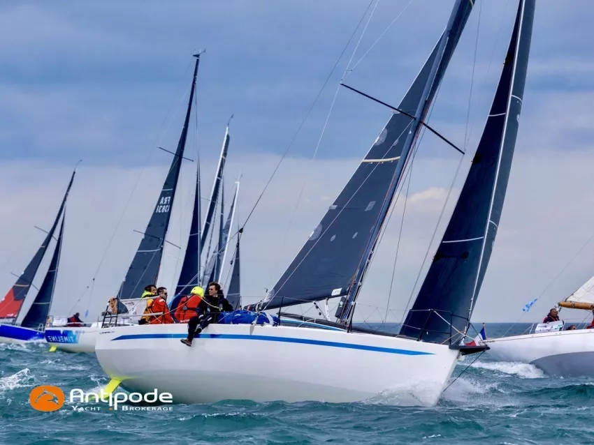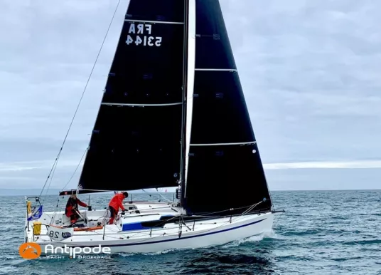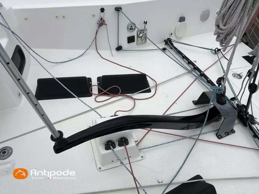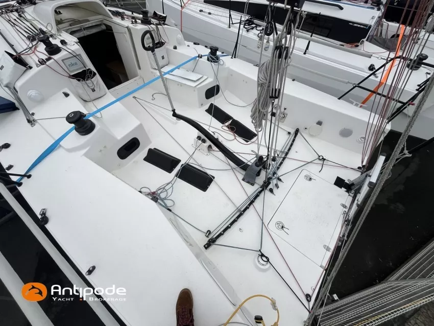 JPK 1080, 2019, Champion de France 2024 IRC Atlantique Manche, 1 er Armen Race 2023, 3 ème Fastnet 2023, version Airex polyvinilester, safrans JPK 1180 (avec dispositif de réglage du parrallélisme), stockage à terre, 1ère main, Volvo D1-20, 18 cv (420 h), Capote rigide de descente coulisante, Electro laquage noir chandeliers et balcons, Bout dehors carbone et sous barbe, Mât carbone et bome amuminium, Hale bas rigide, Gréement dormant Rod, Grand-voile - North Sails 3DI 2025, J 2 - North Sails 3DI 2025, Galette enrouleur Code 0 - Karver 2022, Spinnaker asymétrique A2 - North Sails 2025, 2 Tangons carbone, Drisses GV Génois Spi, écoutes génois, écoutes et bras de spi - Dyneema 2022 - 2022, 3 drisses de spi, Pataras - 2022, Pilote automatique in board avec vérin L & S - NKE Gyropilot 2, Box wifi - NKE, Girouette - NKE Carbowind HR, Apparent wind monitor - NKE, Sondeur - NKE, 2 afficheurs Multigraphic cloisons cockpit - NKE, 2 afficheurs Multidisplay en pied de mât - NKE, 2 telecommandes sans fil - NKE, GPS - NKE HF, Transpondeur AIS (émetteur récepteur) - Icom MA 500 TR, VHF à la table à carte - ICOM ICM 423 G, VHF portable - HX 870 E, Baromètre - Minisailor, Haut-parleurs VHF et radio cockpit, Balise de détresse - Epirb, Unité réfrigérante 12 V ouverture par le dessus, Eau sous pression, Pompe de cale électrique supplémentaire, Prise de quai 220 V + chargeur de batteries - Victron, Batterie moteur - AGM 70 amp 2020, Batteries service - Lipo 3 X 100 amp 2020, Convertisseur 12 V / 220 V - Victron, Contrôleur / gestionnaire de batteries, Feux de navigations de secours à Leds, Feu de tête de mât à Leds, Radeau de survie (révisé 2025) - 6 p, Visible Bretagne. Pour plus d'informations ou pour fixer un rendez-vous de visite, contact : Jérôme Le Joubioux 06 07 45 71 73 - jerome@antipode-yachts.com