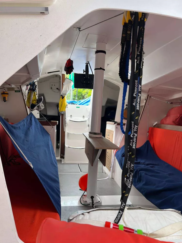 Ce JPK 10.30 en version mât et bôme carbone bénéficie d’un important degré d’équipements et de préparation.