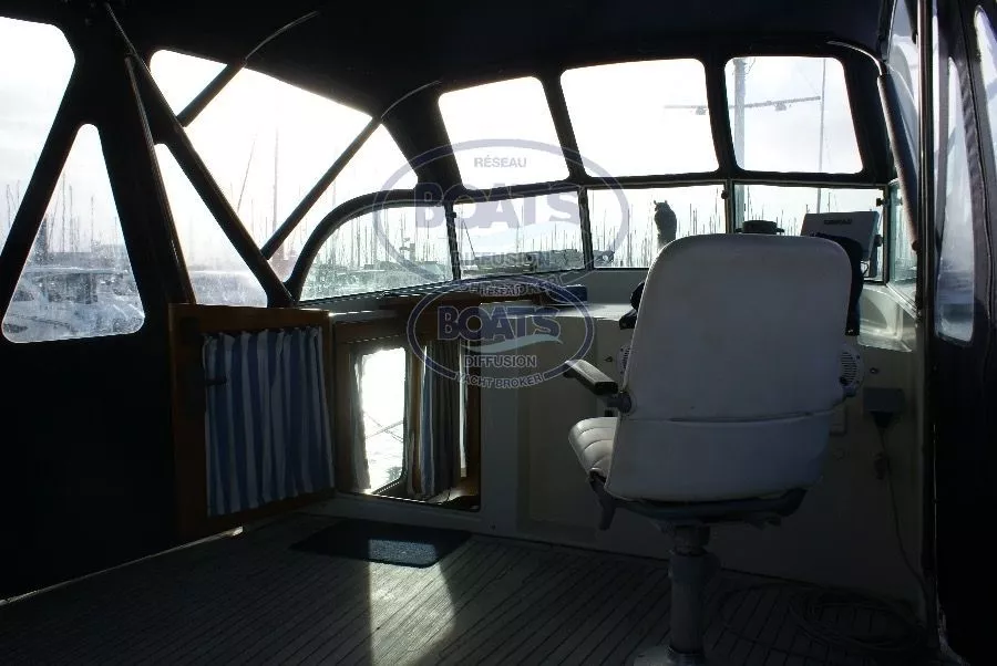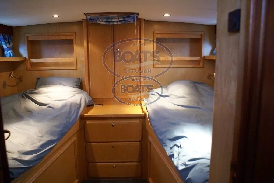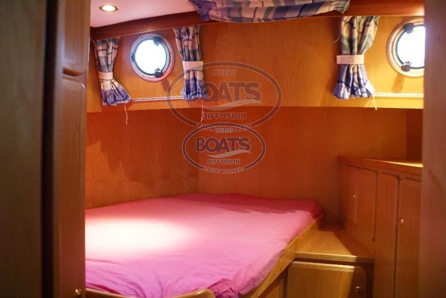 La vedette hollandaise LINSSEN sturdy Twin 40 est dans sa variante avec une cabine arrière double. Elle est équipée de deux moteurs diesel et possède une double timonerie permettant une navigation facile quelles que soient les conditions météorologiques. Coque en acier à bouchain avec un système de stabilisation en roulis . Une conception élégante, classique et intemporelle. La navigation et la vie à bord sont appréciables tant en mer que sur les eaux intérieures. Le Sturdy Twin dispose d'une cuisine entièrement équipée avec une dinette, d'un salon avec canapé et table à manger, de deux cabines doubles avec salle de bain privative, ainsi que d'un pont supérieur équipé d'un poste de pilotage et de sièges pour profiter du paysage pendant la navigation.