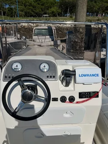 Équipements : Roll bar inox avec feux de navigation - Douchette de pont - Taud de console - Bimini - Bain de soleil avant et arrière - Table arrière - GPS Lowrance - Sonorisation Fusion - Remorque simple essieu Galaxy immergeable incluse