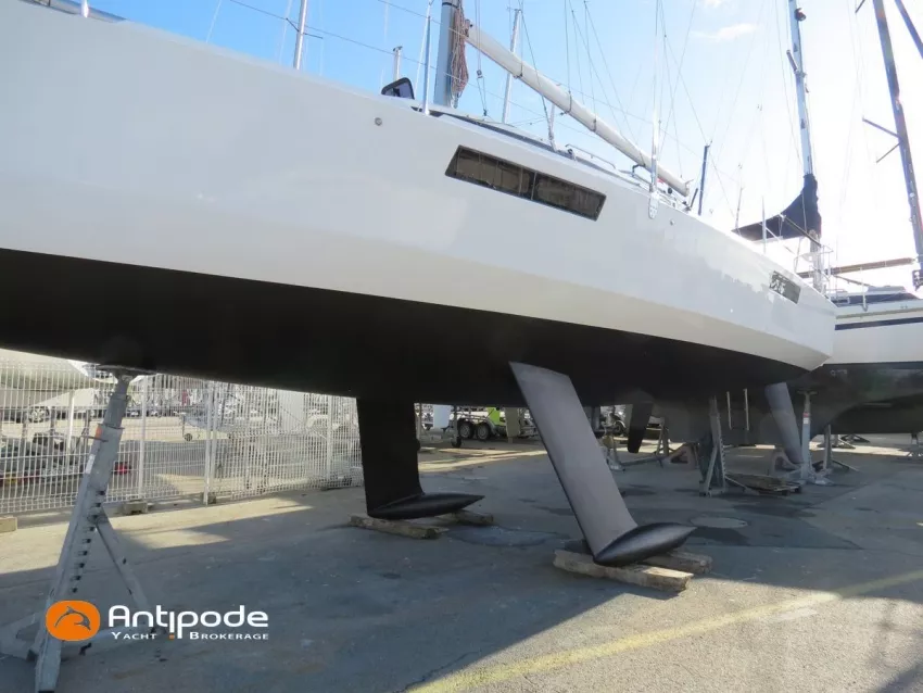 DJANGO 980, 2021, 1ère main, Yanmar 3YM30, 30 cv (1066 h), Version Bi-quille avec béquille arrière pour échouage, Bi-safran, Version d'aménagement intérieur 1 cabine avant ouverte, 2 cabines arrières, Porte pour la cabine arrière tribord, Rideaux pour fermeture lit breton et cabine arrière babord, Pack finition bois et rideaux occultant pour tous les hublots, 1 cabinet de toilette et douche, Panneau ouvrant supplémentaire dans cabine arrière tribord, Bout-dehors rétractable pour spi asymétrique - Selden, Assises de cockpit lattées flexy teck, Table de cockpit avec abattants , Capote de roof, Taud de soleil zippable sur lazybag, Guindeau électrique 800W, Télécommande guindeau sans fil, Etai remplacé en 2025, Grand-voile full batten en DCX (état moyen), Rail de guindant de grand voile + chariots de lattes (2022), Lazy-bag de grand voile, Lazy-jacks de grand voile, Enrouleur de génois avec tambour sur le pont - Facnor Flat Deck 190, Génois sur enrouleur en DCX, Trinquette sur emmagasineur FX2500, Gréement de spi classique, Tangon aluminium, Spinnaker triradial classique + chaussette, Spinnaker asymétrique + chaussette - Technique Voile, Code 0 - 56m² sur emmagasineur FX2500, Pilote automatique in board Raymarine, ACU-200, vérin type 1 et pupitre P70s, Répétiteurs Raymarine I70s cockpit, GPS / lecteur de carte dans le cockpit - Axiom 9, Cartographie électronique, Transpondeur AIS (émetteur récepteur) - Raymarine AIS700, VHF ASN à la table à carte - Raymarine Ray63, Système audio Fusion + HP, Unité réfrigérante 12 V ouverture par le dessus, Chauffe-eau 220 V + échangeur, Eau chaude et froide sous pression, Gazinière 2 feux + four, Prise de quai 220 V + chargeur de batteries Cristec, Batterie moteur, 2 x Batteries service (2 x 77Ah), Contrôleur / gestionnaire de batteries - Victron Energy, Chauffage WEBASTO, Réservoir rigide eaux noires, Douchette de cockpit eau froide, Feux de navigations à Leds, Eclairages intérieurs à Leds, Radeau de survie Plastimo Transocean 6 personnes (prochaine révision 2027), Equipement de sécurité semi-hauturier 6 pers., Mouillage principal ancre Fob rock 12kg + 25m de chaine + 25m de cablot, Amarres et défenses, Visible Bretagne. Pour plus d'informations ou pour fixer un rendez-vous de visite, contact : Jean-Baptiste Lemaire 06 10 25 00 03 - jb@antipode-yachts.com