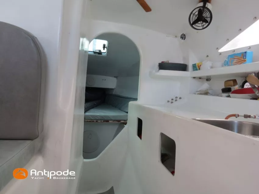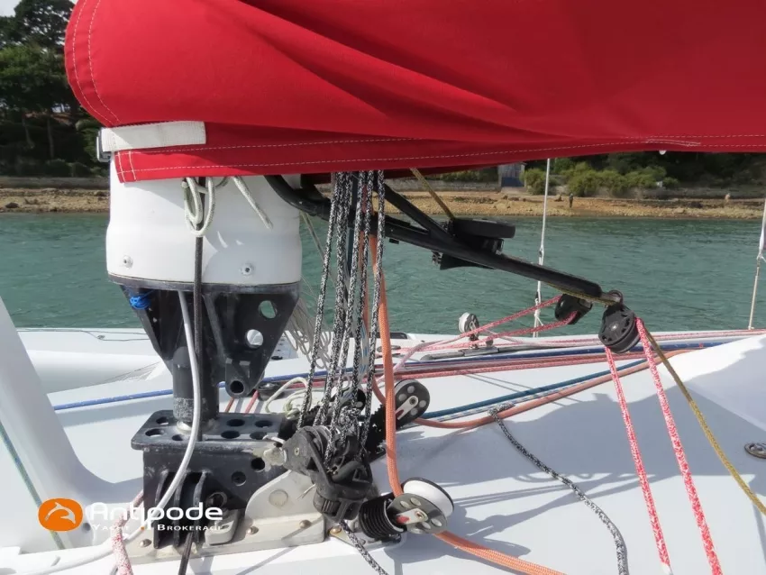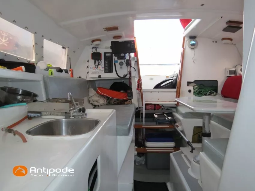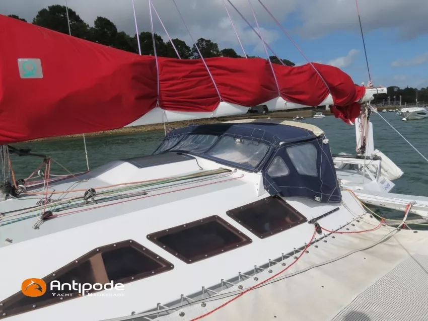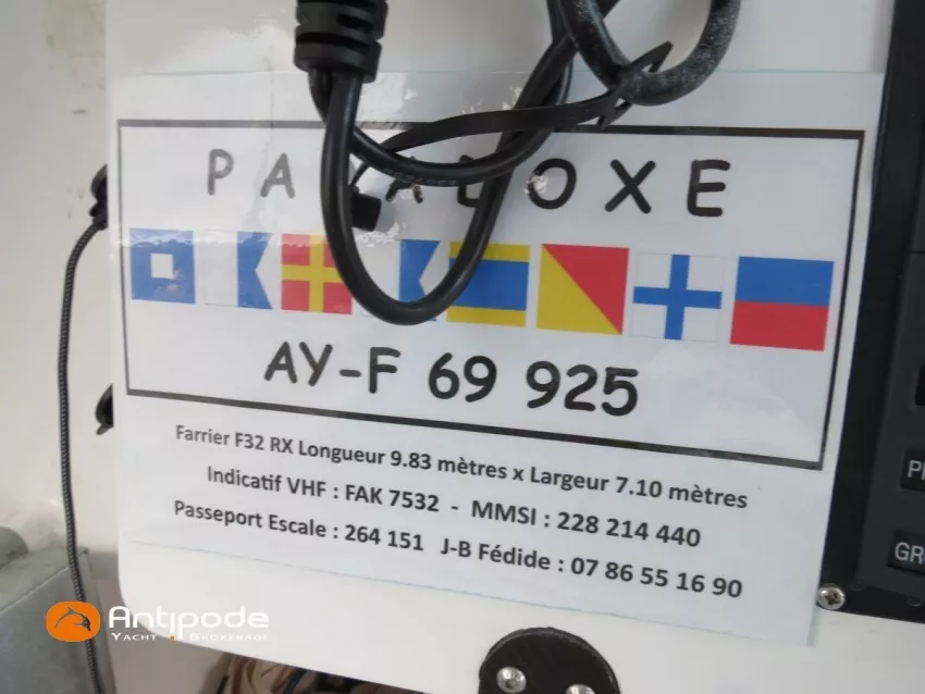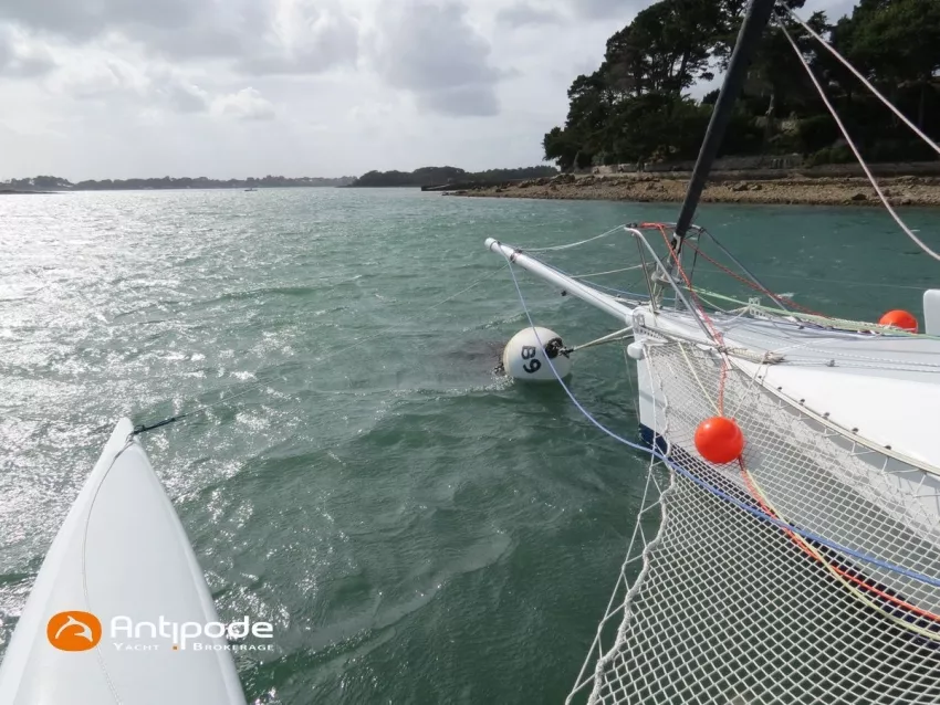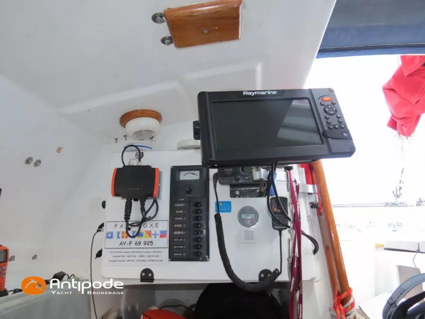 FARRIER F32 RX, 2007, Honda , 15 cv Version d'aménagement intérieur 1 cabine avant, 1 cabine arrière accessible depuis le cockpit, 1 cabinet de toilette , Table de carré convertible en couchette double, Peinture coques et ponts 2024, Cloisons et bras de liaisons carbone, 2 winchs d'écoutes dans le cockpit - Andersen 46, 3 winchs sur roof pour réglages et manoeuvres - Andersen ST 40, 3 bloqueurs (drisse GV, drisse gennaker, ris 1) - Cousin Trestec, Remplacement des panneaux LEWMAR de coques - 2024, Capote de roof - AP A2013, Taud de soleil, Mât pivotant et bome carbone, Gréement dormant textile Dyneema SK99, Greement courant - Dyneema Lyros, Grand-voile full batten - North Sails 3 I 2014, Rail de guindant de grand voile + chariots de lattes - Harken, Solent 21 m2 - Turquoise Voiles Tyra Ply Light Skin 2024, Gennaker 44 m2 - Hyde Sails Pentex Mylar 2007, Foc de brise 16 m2 - North Sails 2013, Drifter (génois) 50 m2 - Mylar Fritz Segel 2009, Tourmentin, Spi asymétrique de tête 111 m2 + chaussette - Hyde Sails 2007, Spi asymétrique de capelage 89 m2 - Fritz Segel 2013, 2 dérives (1 croisière, 1 carbone compétition), 2 safrans (1 croisière, 1 carbone compétition), Pilote automatique de barre franche - Raymarine ST 4000, Télécommande à distance du pilote - Raymarine ST 100, Centrale de navigation - Tacktick 2010, GPS / lecteur de carte - Raymarine Element 9 2024, Transpondeur AIS (émetteur récepteur) - EMTRACK Class B 2024, VHF - Standard horizon, Panneaux solaires, Feux de navigations à Leds, Eclairages intérieurs à Leds. Remorque de route double essieu SIGMA révisé 2025. Visible Bretagne. Pour plus d'informations ou pour fixer un rendez-vous de visite, contact : Jérôme Le Joubioux 06 07 45 71 73 - jerome@antipode-yachts.com