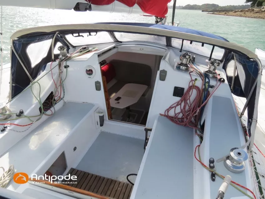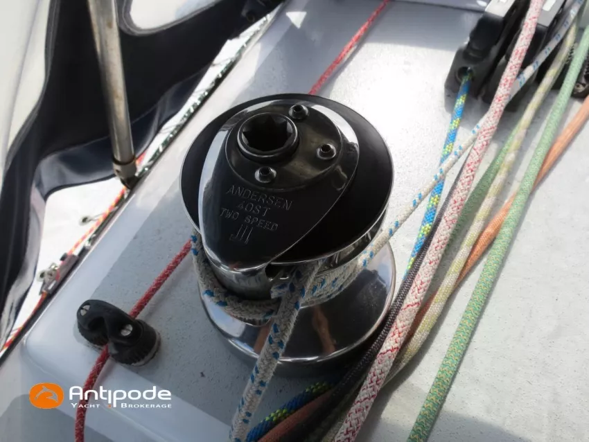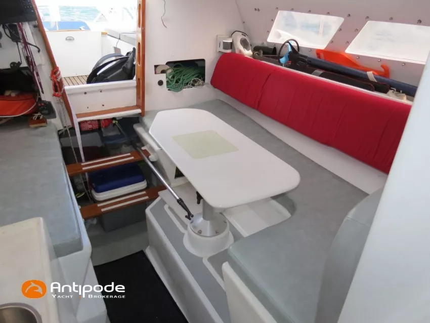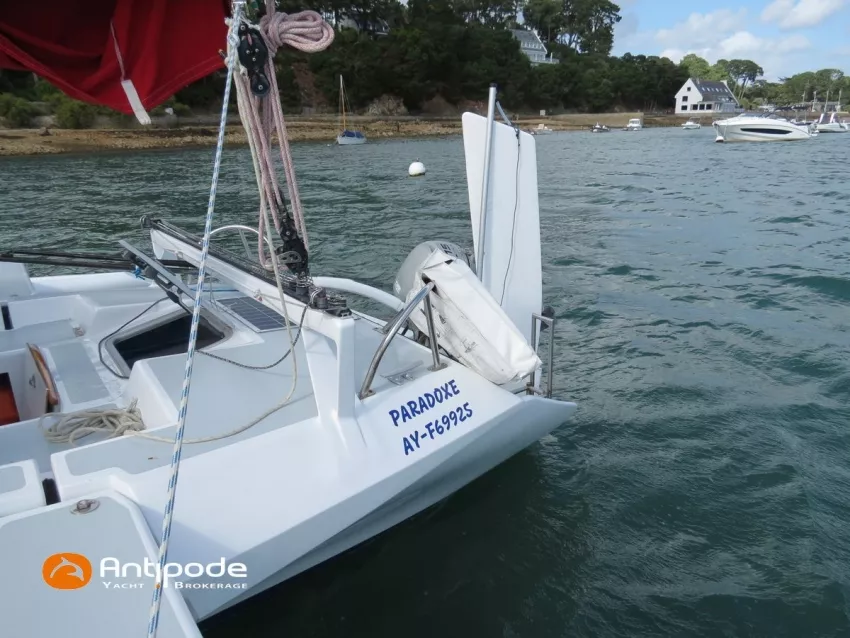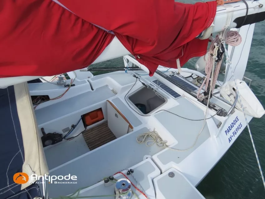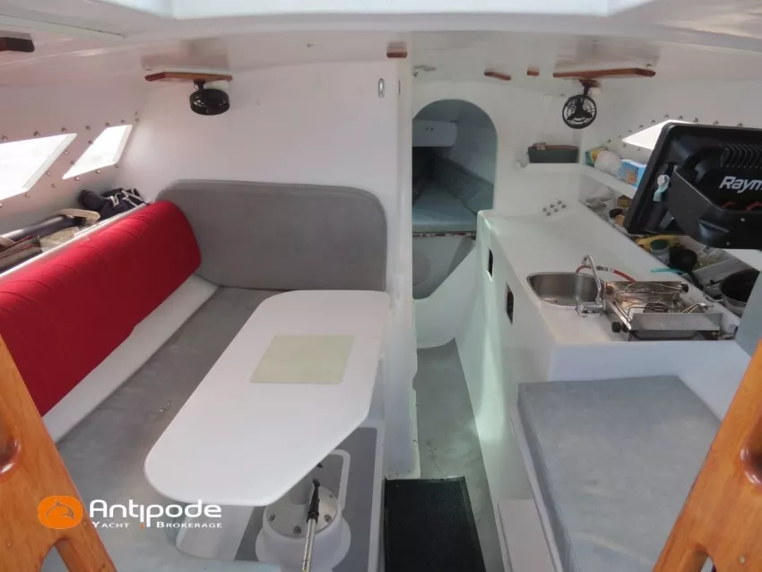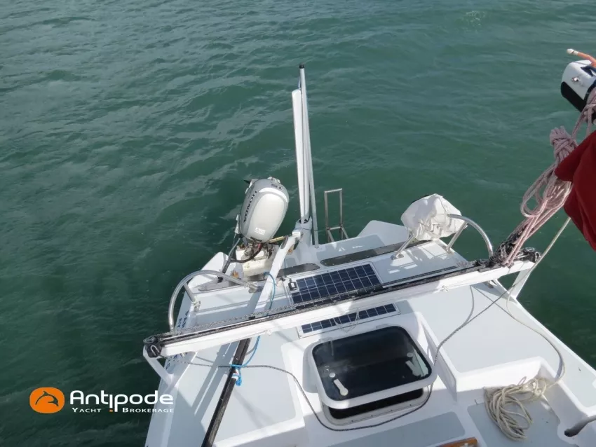 FARRIER F32 RX, 2007, Honda , 15 cv Version d'aménagement intérieur 1 cabine avant, 1 cabine arrière accessible depuis le cockpit, 1 cabinet de toilette , Table de carré convertible en couchette double, Peinture coques et ponts 2024, Cloisons et bras de liaisons carbone, 2 winchs d'écoutes dans le cockpit - Andersen 46, 3 winchs sur roof pour réglages et manoeuvres - Andersen ST 40, 3 bloqueurs (drisse GV, drisse gennaker, ris 1) - Cousin Trestec, Remplacement des panneaux LEWMAR de coques - 2024, Capote de roof - AP A2013, Taud de soleil, Mât pivotant et bome carbone, Gréement dormant textile Dyneema SK99, Greement courant - Dyneema Lyros, Grand-voile full batten - North Sails 3 I 2014, Rail de guindant de grand voile + chariots de lattes - Harken, Solent 21 m2 - Turquoise Voiles Tyra Ply Light Skin 2024, Gennaker 44 m2 - Hyde Sails Pentex Mylar 2007, Foc de brise 16 m2 - North Sails 2013, Drifter (génois) 50 m2 - Mylar Fritz Segel 2009, Tourmentin, Spi asymétrique de tête 111 m2 + chaussette - Hyde Sails 2007, Spi asymétrique de capelage 89 m2 - Fritz Segel 2013, 2 dérives (1 croisière, 1 carbone compétition), 2 safrans (1 croisière, 1 carbone compétition), Pilote automatique de barre franche - Raymarine ST 4000, Télécommande à distance du pilote - Raymarine ST 100, Centrale de navigation - Tacktick 2010, GPS / lecteur de carte - Raymarine Element 9 2024, Transpondeur AIS (émetteur récepteur) - EMTRACK Class B 2024, VHF - Standard horizon, Panneaux solaires, Feux de navigations à Leds, Eclairages intérieurs à Leds. Remorque de route double essieu SIGMA révisé 2025. Visible Bretagne. Pour plus d'informations ou pour fixer un rendez-vous de visite, contact : Jérôme Le Joubioux 06 07 45 71 73 - jerome@antipode-yachts.com