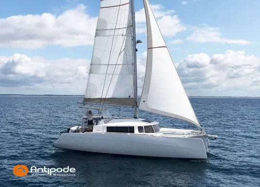 NEEL 43, 2022, 1ère main, VOLVO D2-50F, 50 cv (500.1 h), Propulseur d'étrave, Version Pack Premium, Version d'aménagement intérieur 1 cabine avant, 2 cabines latérales avec cloisons de séparations, 2 Cabines simples aménagées dans les flotteurs, Menuiseries intérieures Alpi, Tapis de sol Bolson dans carré, cabines et accès soute technique, Sous matelas dans les cabines doubles, Rideaux dans les cabines, Meuble haut de rangement au dessus de la cuisine, Table de carré cocktail, Moustiquaires de hublots et panneaux de pont, 2 winchs d'écoutes de spinnakers sur les coques - Antal XT44, 1 winch sur roof pour écoutes de génois ou trinquette - Antal XT48, Winch électrique 2 vitesses sur roof pour drisses et écoutes de GV - Antal XT40, Delphinière composite avec davier intégré, Fond de cockpit Flexyteek, Jupe arrière avec flexyteek et bers d'annexe, Table de cockpit Diner, Housse de barre à roue, Bimini poste de barre avec fermetures parebrise et latérales, Hard top de cockpit, Selleries cockpit et poste de barre - Sunbrella, Taud d'assise du poste de barre et taud de console, Compteur de chaine au poste de barre, Palan de levage d'annexe électrique - Antal line driver + télécommande, Tauds de fermeture arrière complète du cockpit, Mât aluminium classique posé sur le pont, Grand-voile à corne full batten - Incidences, Rail de guindant de grand voile + chariots de lattes, Prises de ris automatiques (x 2), Lazy-bag de grand voile, Lazy-jacks de grand voile, Enrouleur de génois avec tambour sur le pont - Facnor LS180, Génois sur enrouleur - Incidences, Trinquette sur drisse moufflée et emmagasineur - Incidences, Gréement de spi asymétrique, Spinnaker asymétrique 115 m², Chaussette à spi, Gennaker sur emmagasineur - Technique Voile, Code 0 sur emmagasineur - Intuitive Sails, Pilote automatique in board - B&G NAC3, Pupitres de commande du pilote à la table à carte et au poste de barre, Répétiteur poste de barre - B&G Triton 2, Répétiteur à la table à carte - B&G Triton 2, GPS / lecteur de carte au poste de barre - B&G 12 pouces, Radar avec radôme sur support de mât - B&G broadband 4G, Transpondeur AIS (émetteur récepteur) avec switch pour couper l'émission, VHF ASN à la table à carte - B&G V60, VHF portable - Icom, Système audio Fusion MS AV 750 + 4 HP, Balise de détresse, Unité réfrigérante 12 V porte frontale, Conservateur froid négatif (freezer), Chauffe-eau 60 litres - 220 V + échangeur, Gazinière 2 feux + four avec grill, Plancha gaz dans le cockpit, 2 x batteries propulseur et chargeur dédié, Batteries service parc Lithium - 2 x 200Ah, Combiné chargeur convertisseur 12 V / 220 V - 2000W avec commande déportée à la table à carte - Victron Energy, Prises intérieures 220 V / 12 V / USB, Contrôleur / gestionnaire de batteries, Chauffage WEBASTO, Réservoir rigide eaux noires, WC électrique, Panneaux solaires - Solbian 2 x 155W , Douchette de cockpit eau chaude / eau froide, Feux de navigations à Leds, Eclairages intérieurs à Leds, liseuses avec prises USB, éclairage Led dans le cockpit, Radeau de survie + Equipement de sécurité 8 personnes , Mouillage principal ancre Kobra, Amarres et défenses, Annexe + Moteur hors-bord Suzuki 4tps 2.5cv, Visible Bretagne. Pour plus d'informations ou pour fixer un rendez-vous de visite, contact : Jean-Baptiste Lemaire 06 10 25 00 03 - jb@antipode-yachts.com
