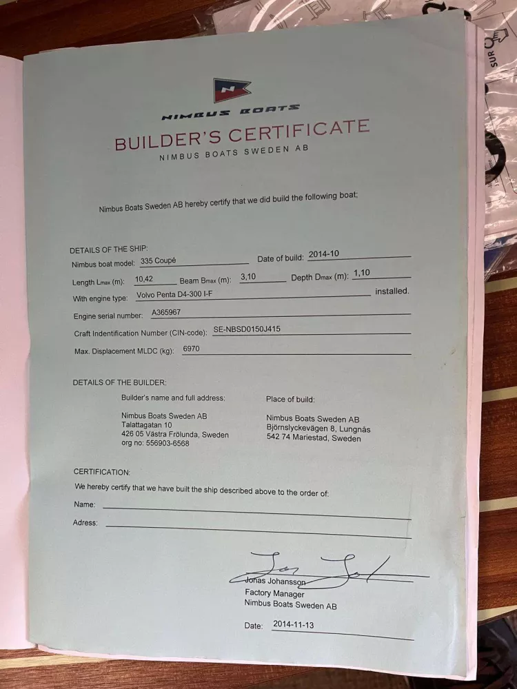 • Propulsion : VOLVO D4 – 300 V DRIVE commande électrique 1078h