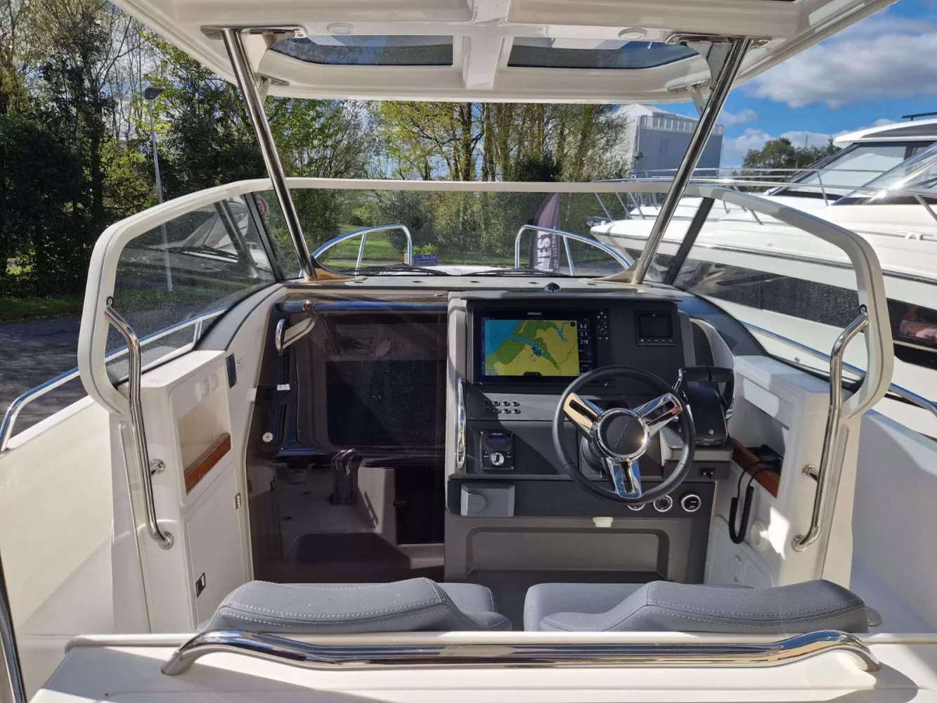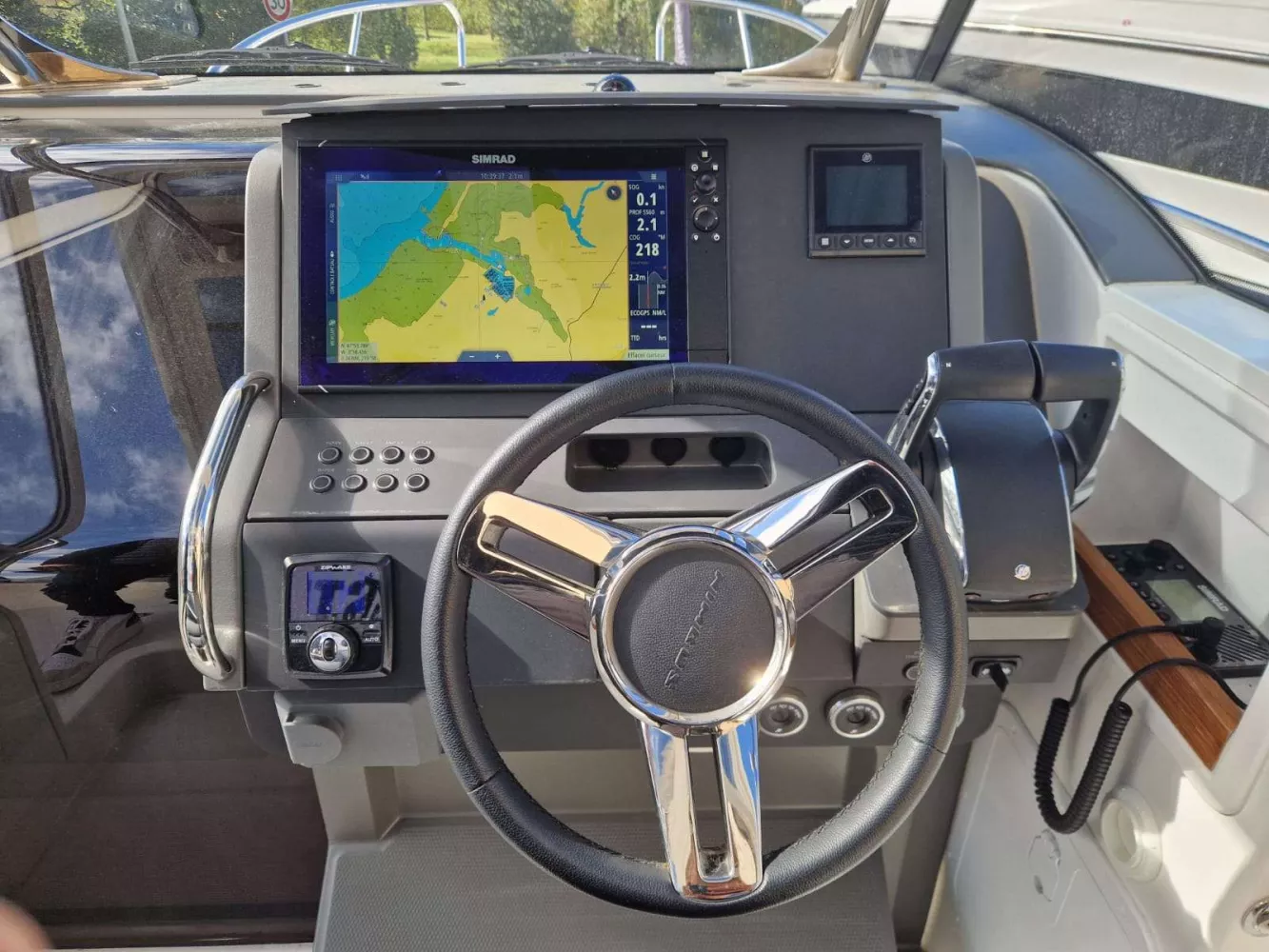 T-TOP incluant toit polyester et vitrage - Leaning-post avec evier et coussin - Coque blanche - Sellerie de couleur Bleu Storm - Propulseur d'étrave - Flaps automatique ZIPWAKE- Sellerie Nimbus - Nimbus Connect - Bain de soleil avant - Fermeture intétgrale de TTOP - Barres de toit - Prise 220v et chargeur de quai - Hublot supplémentaire de cabine - Couverts et vaisselle Nimbus - Decharge des eaux noires - Guindeau électrique - Réfrigérateur supplémentaire - Portillon - Matelas cabine - Led TTOP - Chauffe eau 220v - Pack amarrage NIMBUS - Eclairage sous marin - Chauffage Webasto - VHF SIMRAD 4RS0 - GPS SIMRAD NSS 16 pouces - Sonde SIMRAD SS60 - Pack Audio CLARION + 2HP