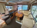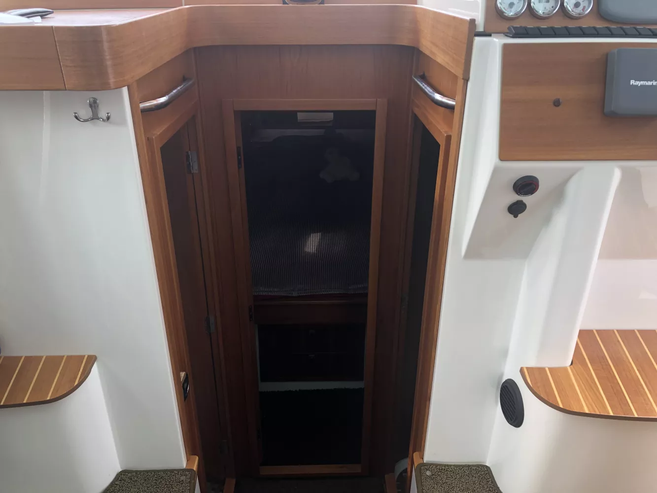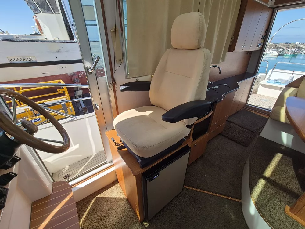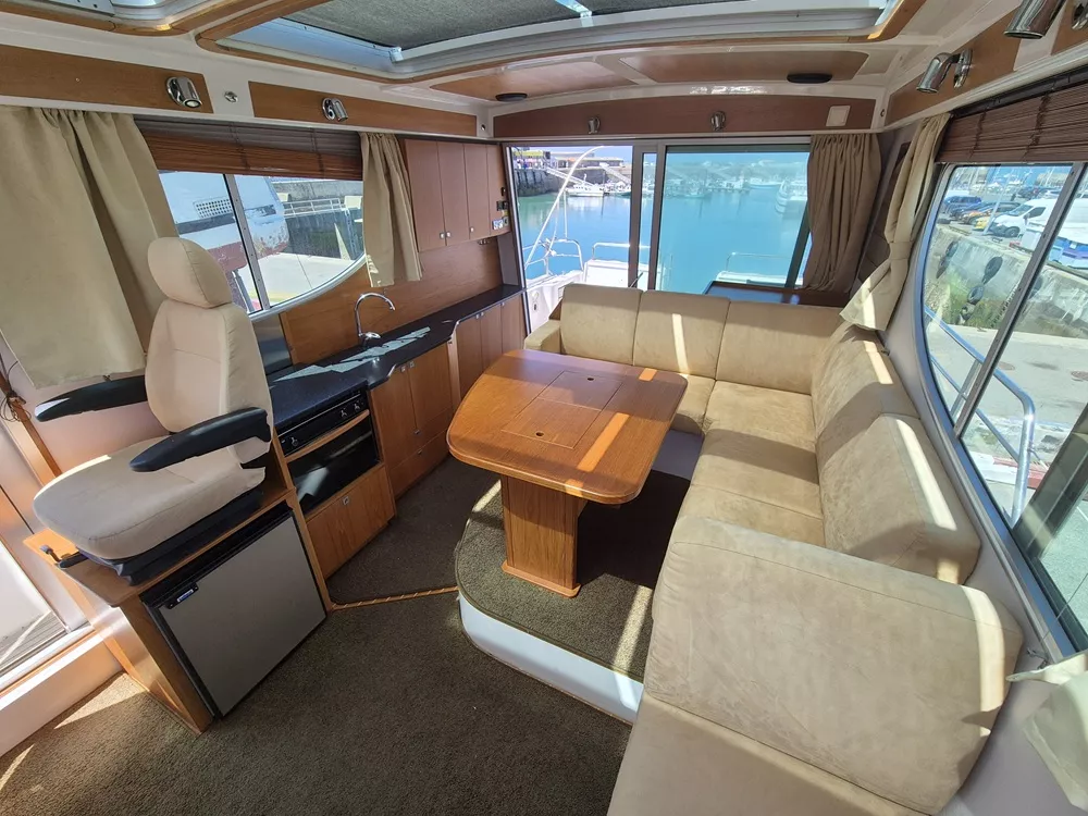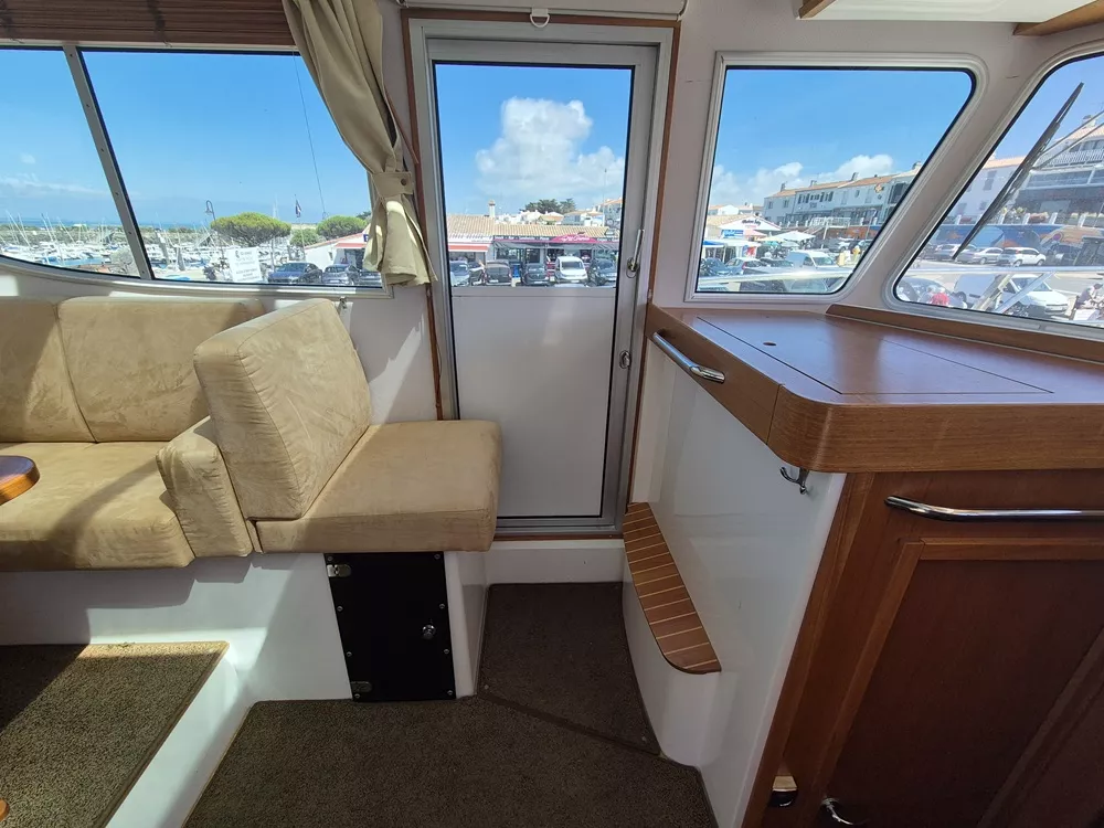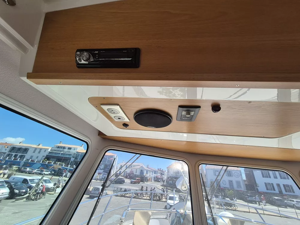 La timonerie est extrêmement bien pensée avec 2 portes latérales coulissantes, une baie arrière ouvrante et un toit ouvrant électrique, favorisant l’aération et la vie intérieure/extérieur fluide vers le grand cockpit arrière.