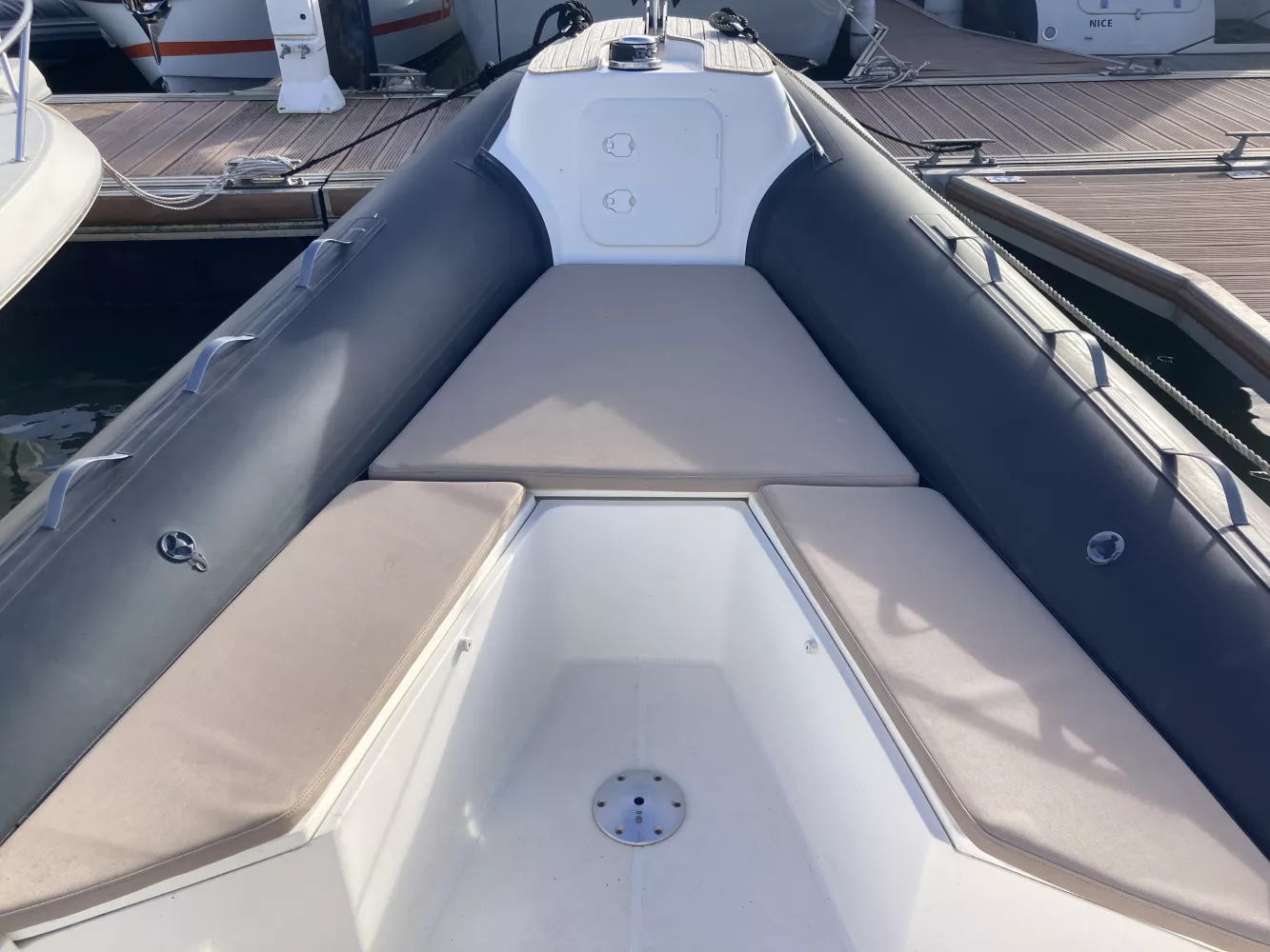 D’un confort exceptionnel à bord et en navigation, ce semi-rigide offre une grande stabilité. Sa coque au V très prononcé optimise ainsi ses qualités de maniabilité, tout en élégance. Grâce à sa console centrale, les déplacements à bord sont facilités. Excellent compromis pour la pêche, la promenade et la pratique des sports tractés, il sera le partenaire idéal de vos sorties en famille ou entre amis !