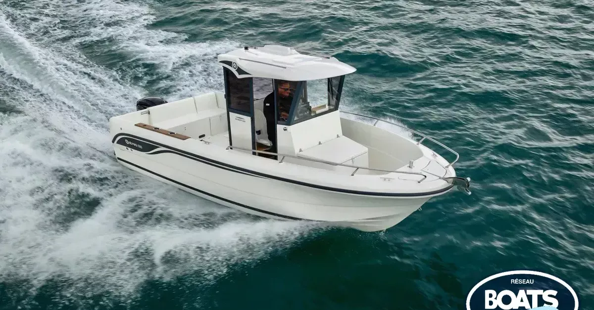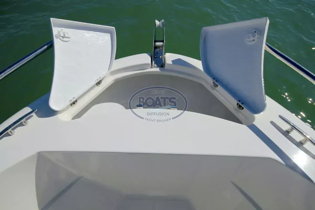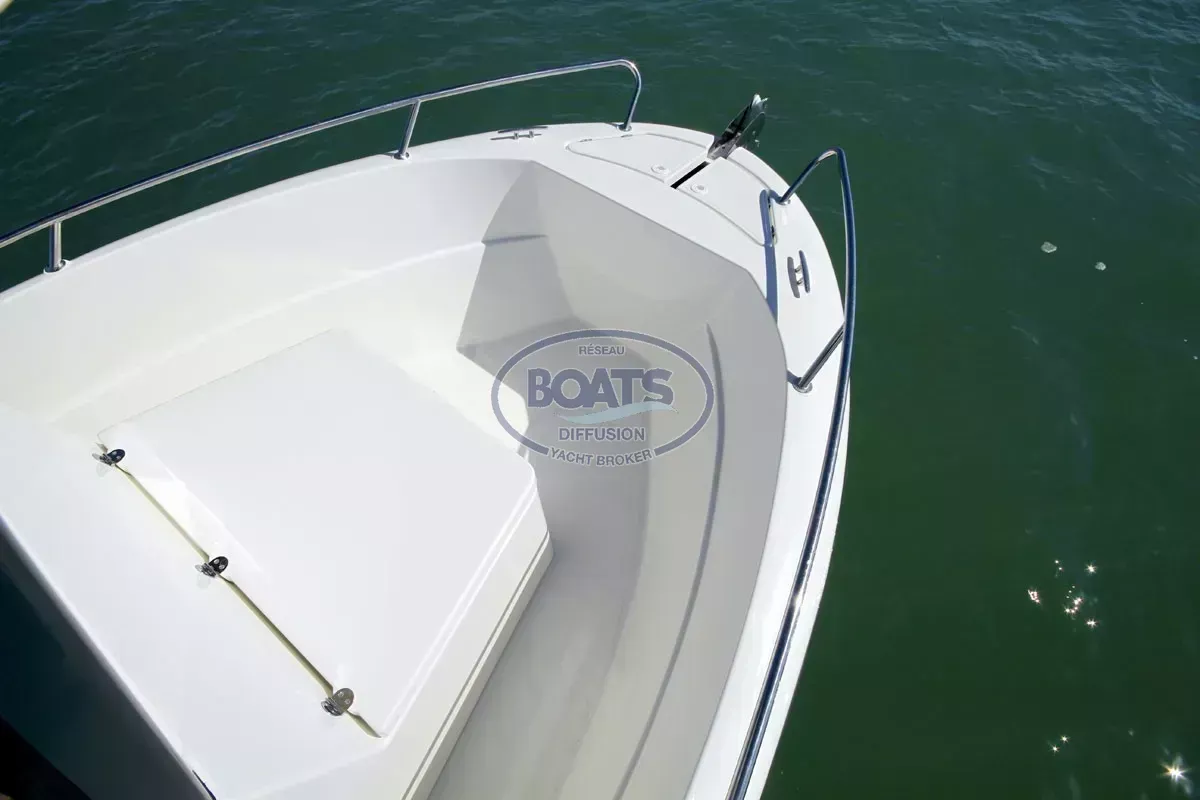 Ocqueteau Ostrea 600 neuf unité de déstockage proposé avec un moteur Tohatsu 115 cv mais possibilité d'autres motorisations au choix . Le bateau est équipé d'un coffre d'assise de cockpit d'un vivier avec jet de pont , banquette latérale et plage arrière avec echelle de bain encastrée.