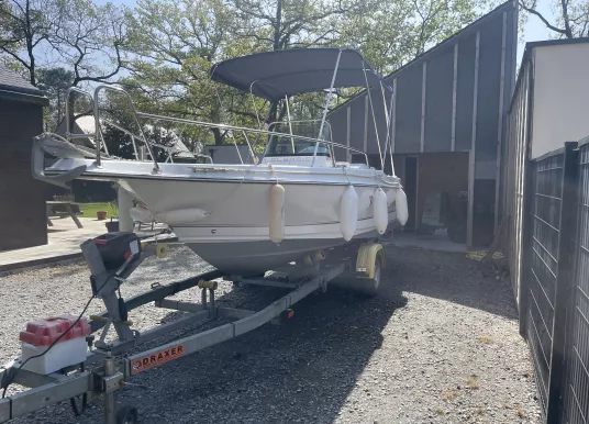 Bateau open de 2022 toutes options vendu avec sa remorque Draxer 1350 avec treuil électrique un moteur Honda Vtec 150 cv ( garantie constructeur)