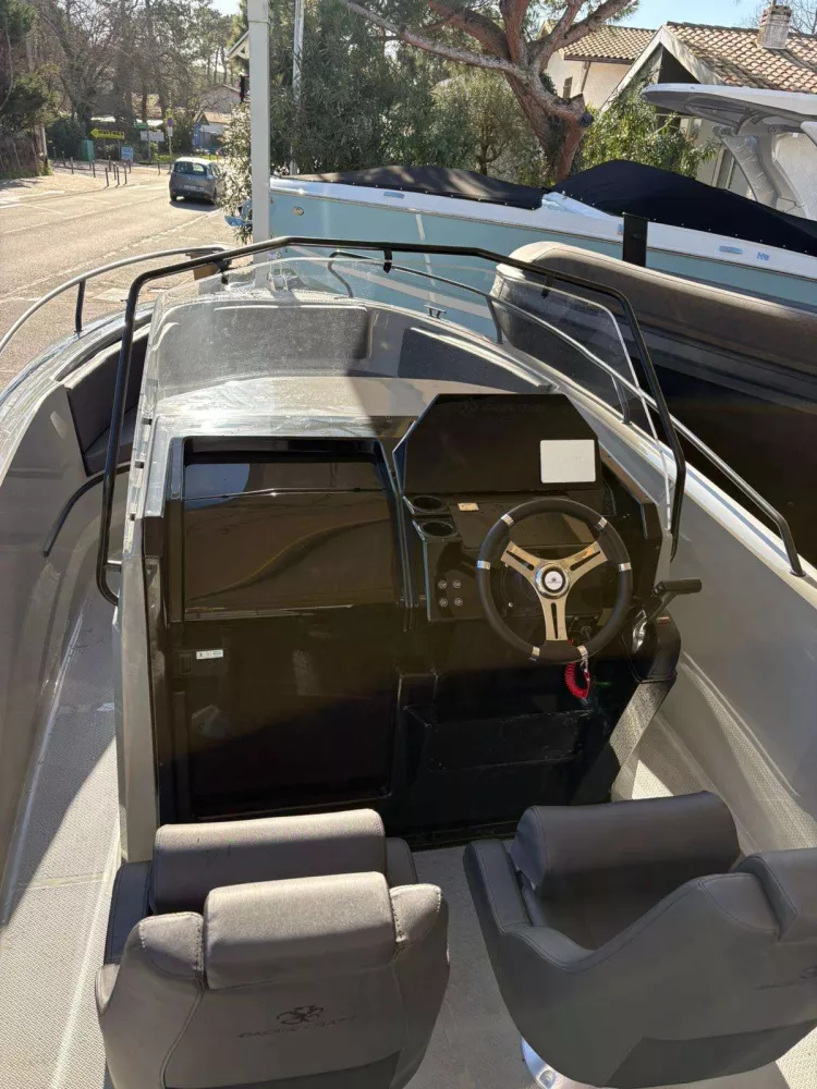Avec ses 6,75 mètres de longueur et sa largeur de 2,50 m, ce modèle offre une belle habitabilité à bord tout en restant facile à manœuvrer. Millésime 2026, ce bateau est neuf et disponible immédiatement en stock.