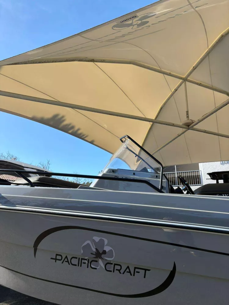 Il est motorisé par un Yamaha 175 SHO VMAX essence, une motorisation reconnue pour son dynamisme, sa réactivité et son plaisir de navigation, parfaitement adaptée à la carène du Pacific Craft 695 Open.