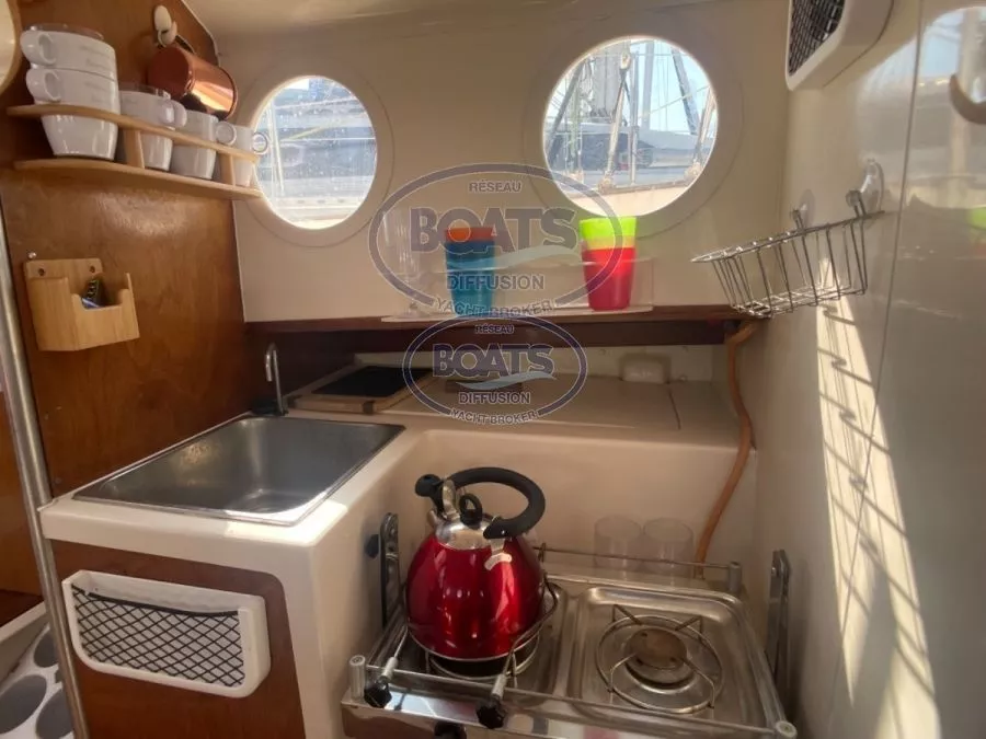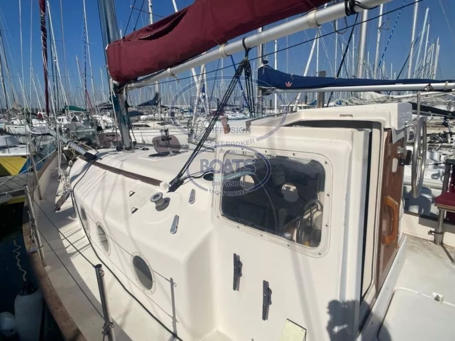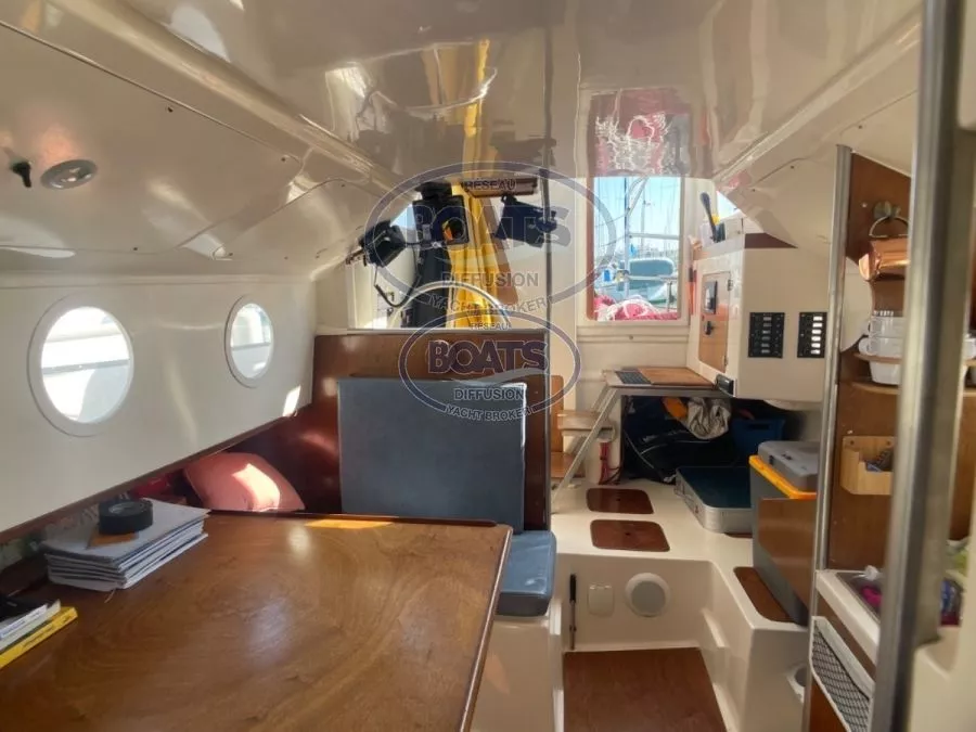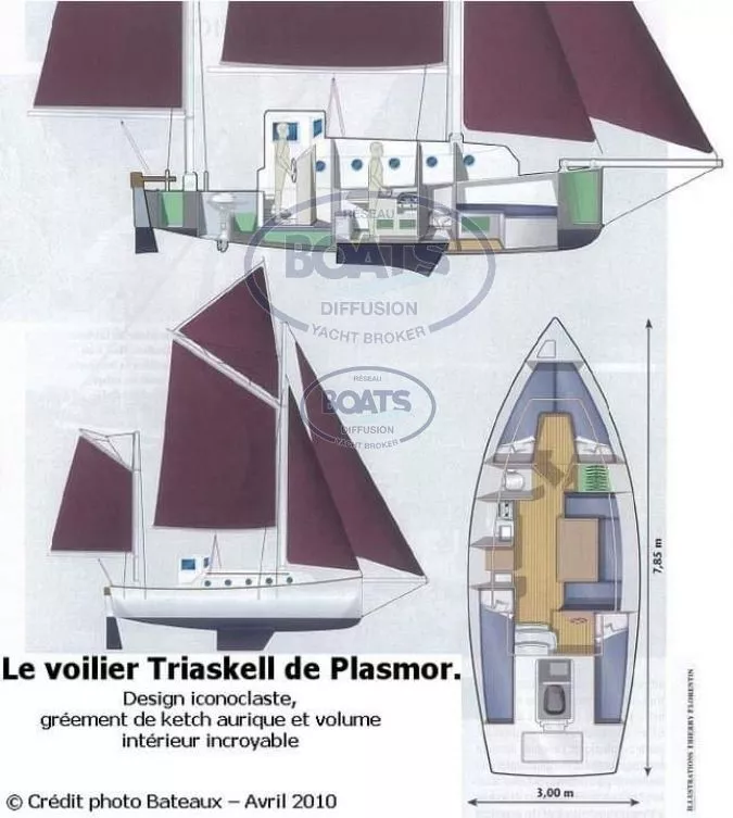 VISIBLE À LA ROCHELLE - CONTACTEZ JEAN-PIERRE OU AUDREY AU 06 09 42 34 55 - europeanboatcourtage@gmail.com - Le Triaskell est un voilier de croisière côtière conçu par l’architecte Christophe Baley et fabriqué par le chantier français Plasmor entre 2009 et 2018. Ce modèle de 2010, en version ketch, arbore un design classique inspiré des voiliers d’antan. Grâce à sa biquille et son faible tirant d’eau de 0,95 m, il peut facilement s’échouer. Son gréement ketch, avec un mât d’artimon supplémentaire, assure une meilleure répartition de la voilure, offrant ainsi une navigation plus polyvalente. Il est également plus facile à manœuvrer, notamment lors des virements de bord et empannages, grâce à des voiles plus petites et maniables. Son mât d’artimon améliore la stabilité et le confort en mer. De plus, il offre un grand volume intérieur et une timonerie abritée, faisant de lui un voilier performant, confortable et élégant !