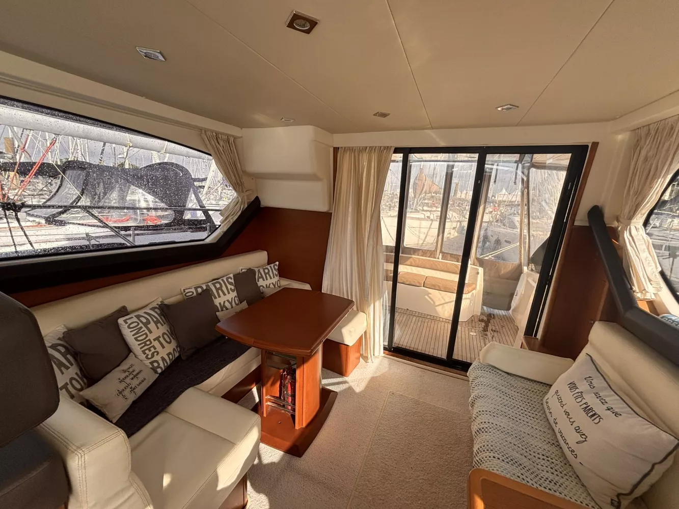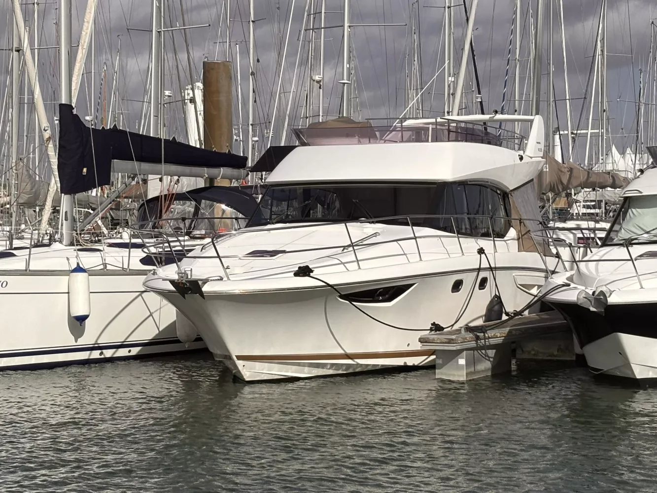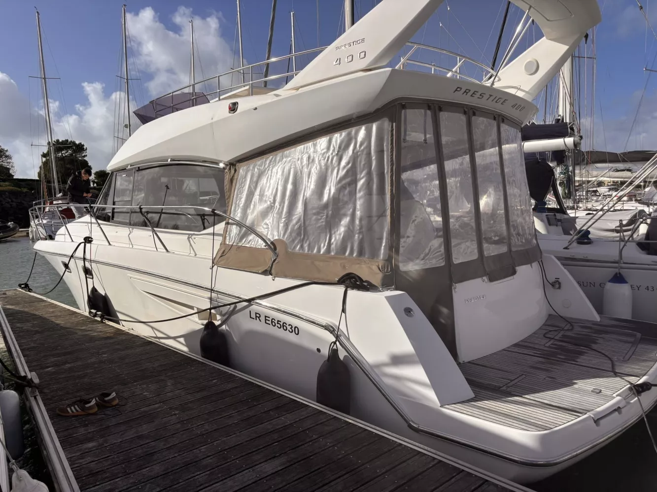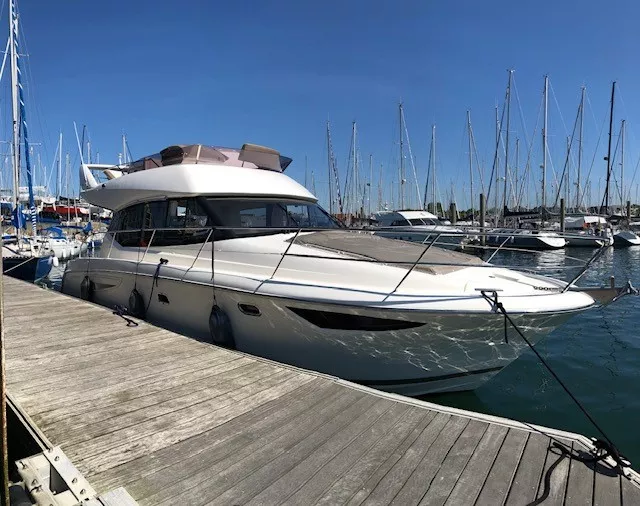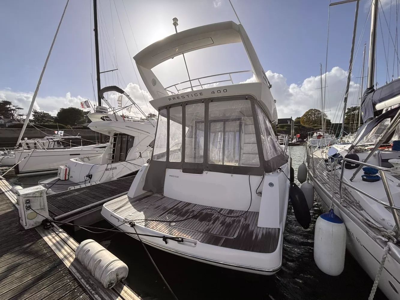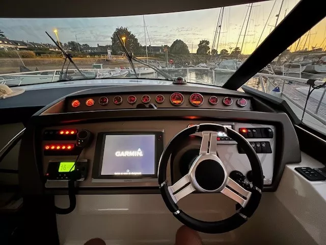 À vendre : Prestige 400 de 2012, parfaitement entretenu et prêt à naviguer. Révision complète avec échangeurs en juin 2025. Ce yacht de croisière allie confort, performance et élégance, idéal pour la navigation côtière ou la croisière de plusieurs jours. / 2 x Cummins 380 cv (~201 h) / Propulseur d’étrave / Flaps de commande / Guindeau électrique / Chaîne 10 mm / Émerillon inox / Sellerie Fly et extérieure en bon état / Table Fly + bain de soleil / Housses de protection / Fermeture arrière complète / Douchette chaude/froide à la plage arrière / Rideaux occultants / GPS Garmin GPSMAP 7012 / Pilote automatique Garmin GHC 10 / Répétiteur Fly Garmin (VHF, GPS, pilote) / VHF Garmin VF 200 I / 2 cabines / 2 salles d’eau avec WC électriques / Chauffage / TV / Grand réfrigérateur + congélateur / Micro-ondes / 3 feux gaz / Ligne de quai 220 V / Chargeur intégré / Prise 12 V / Radeau de survie (à réviser) / Gros entretien effectué en juin 2025 / Échangeurs eau, air et huile refaits.