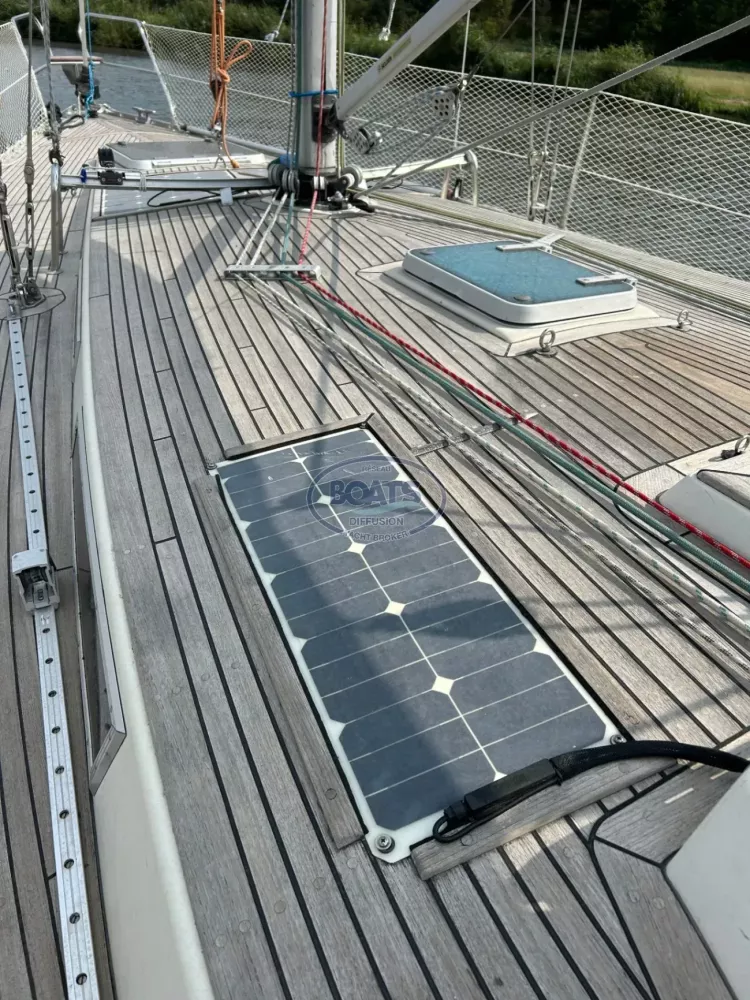 Avec son pont en teck impeccable, ses aménagements intérieurs en bois massif et son armement hauturier complet, ce bateau est prêt à reprendre la mer sans délai.