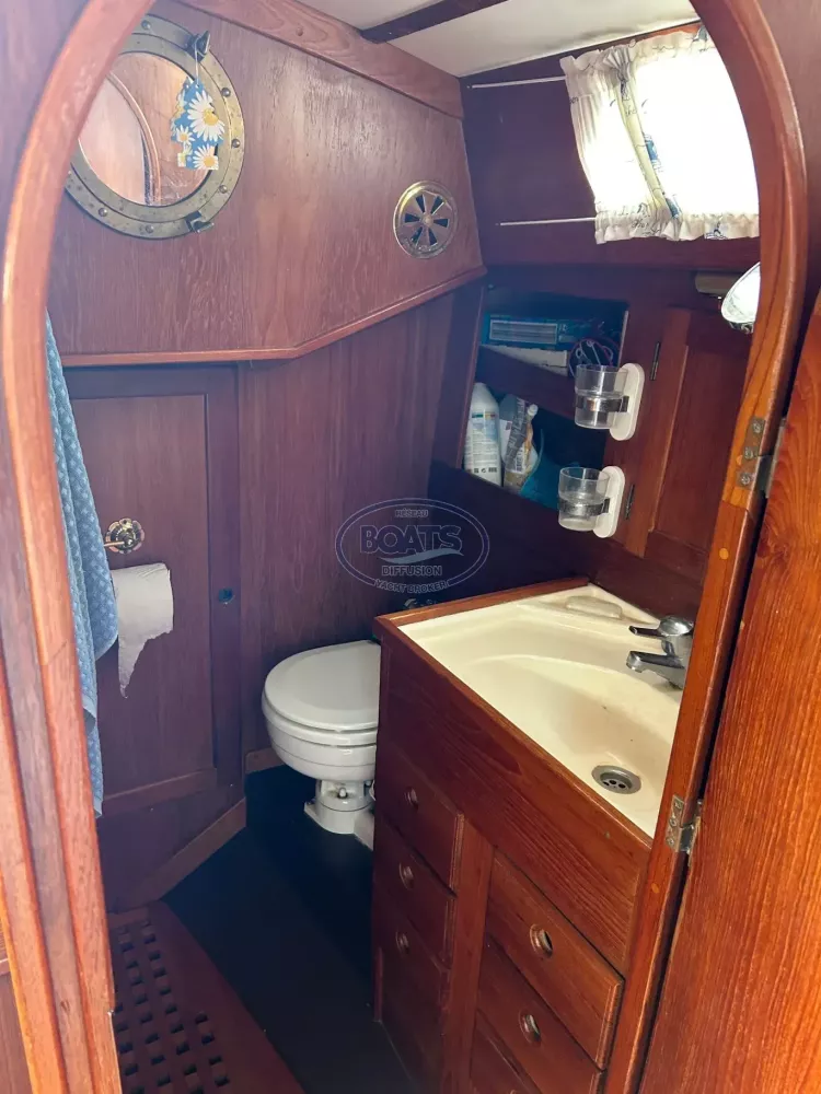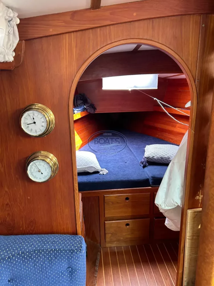 Avec son pont en teck impeccable, ses aménagements intérieurs en bois massif et son armement hauturier complet, ce bateau est prêt à reprendre la mer sans délai.