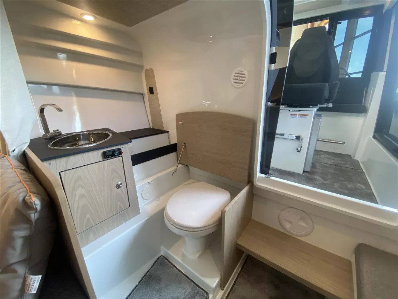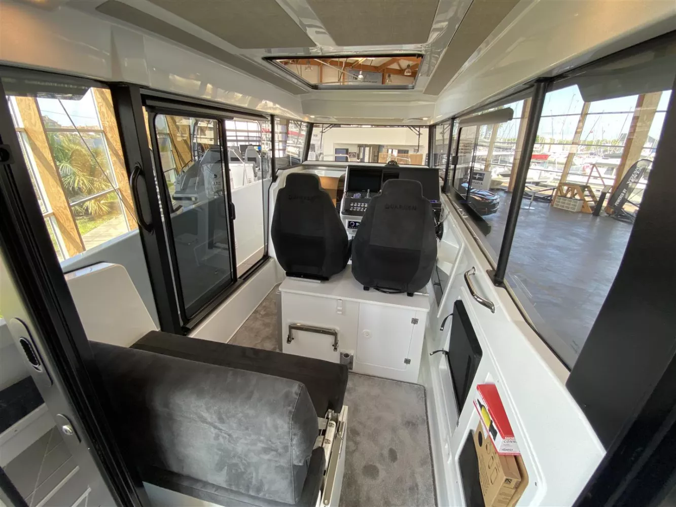 🌊 Grande cabine protégeant des intempéries pour naviguer en toute sérénité, quelles que soient les conditions