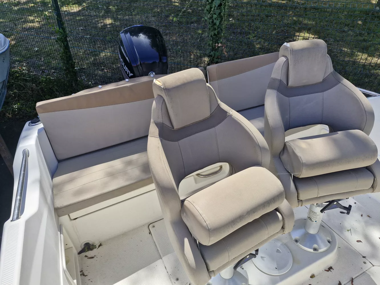 sellerie complète avec bain de soleil avant. Accrocs sur le dessus des sièges pilote et copilote