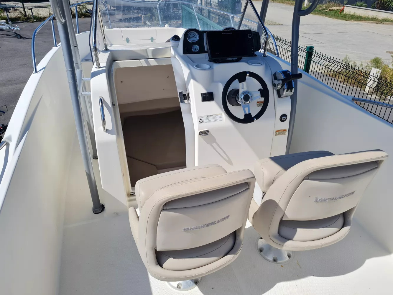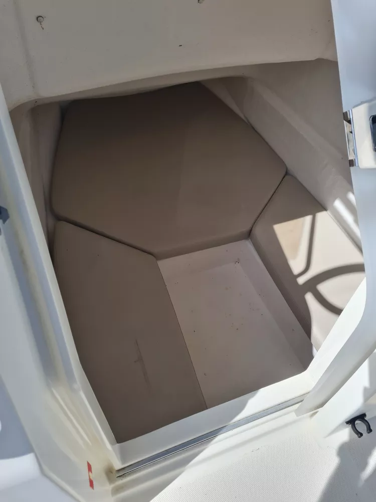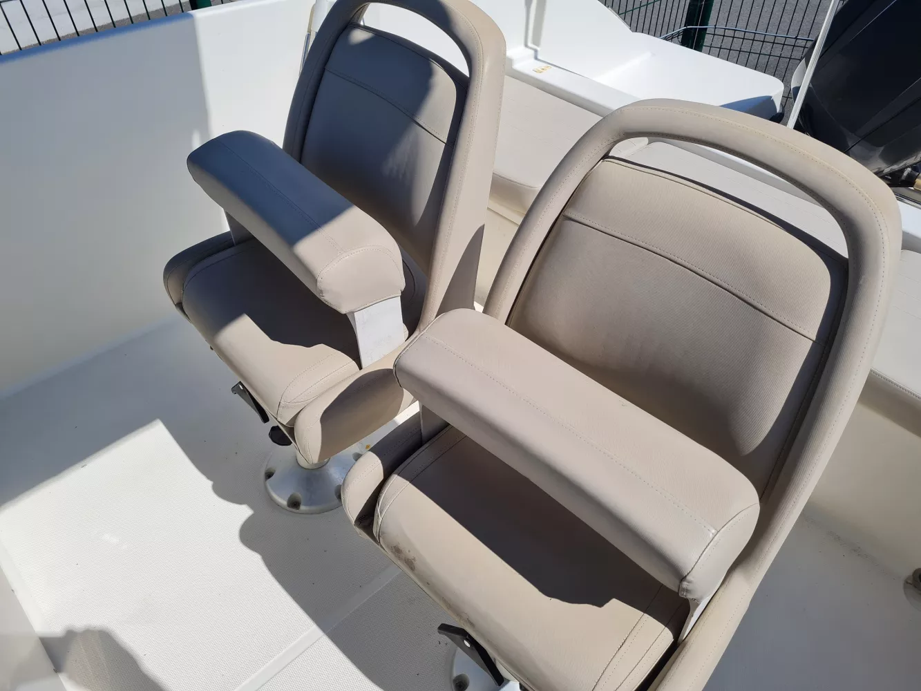 Table de pique nique / Coussin de bain de soleil avant / Coussin de cabine / Compas / T-top avec toile neuve / Combiné GPS sondeur Humminbird Hélix 9 SI avec carte / Sellerie dossier arrière neuve / Plateforme + échelle de bain.
