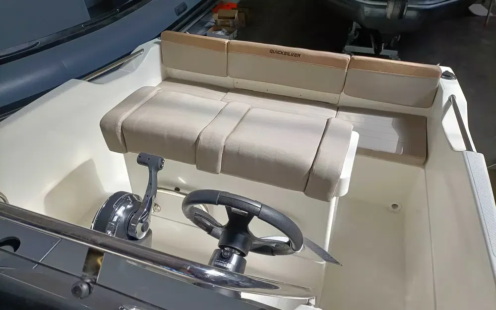 Davier à rouleau, échelle de bain, feux de navigation, baille à mouillage, cockpit autovideur, porte-cannes à pêche, compteur/compte-tours analogique , jauge de carburant, indicateur d’assiette, banquette arrière, siège baquet pilote pivotant et transformable en bolster, siège de copilote, sellerie de cockpit, rangements sous banquette arrière, pré-équipement HB, montage simple batterie, pompe de fond de cale électrique & manuelle, direction hydraulique, extincteur,
